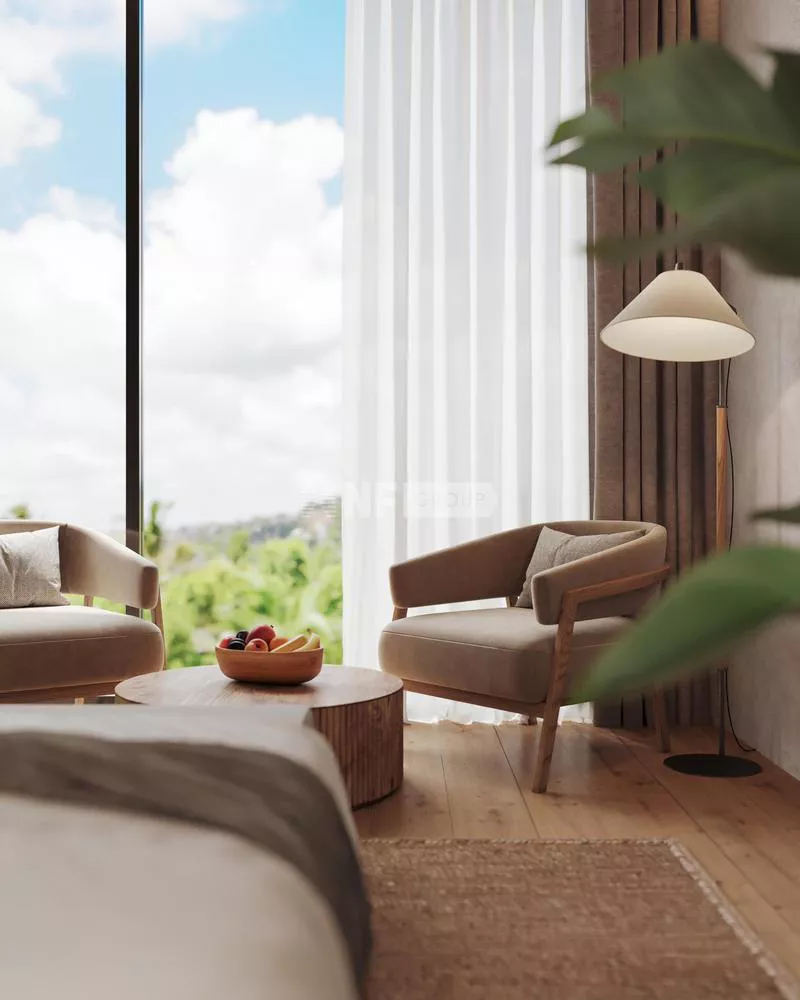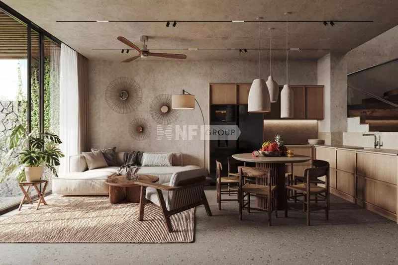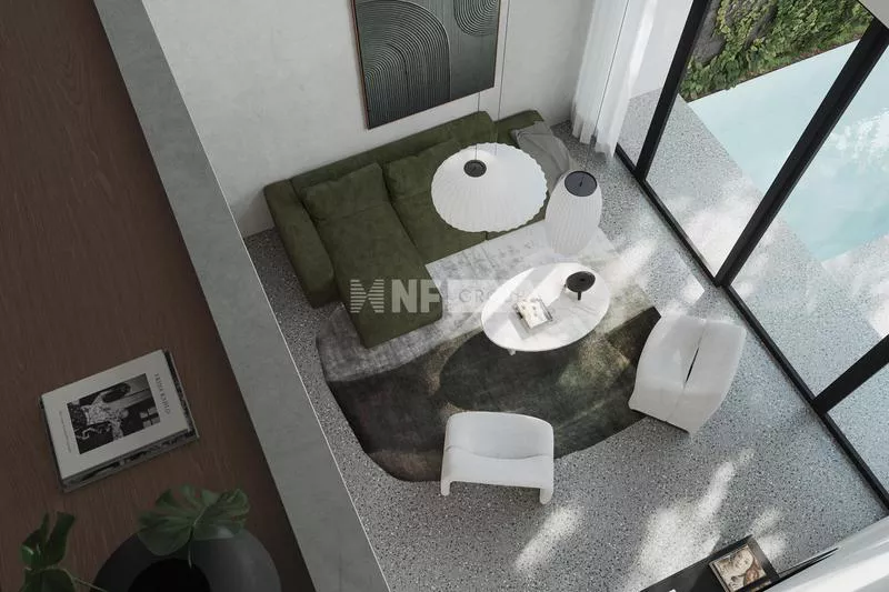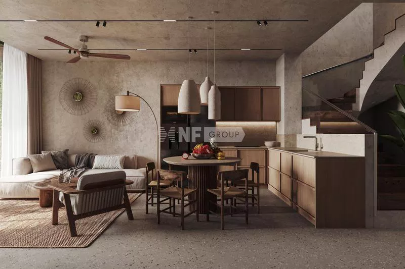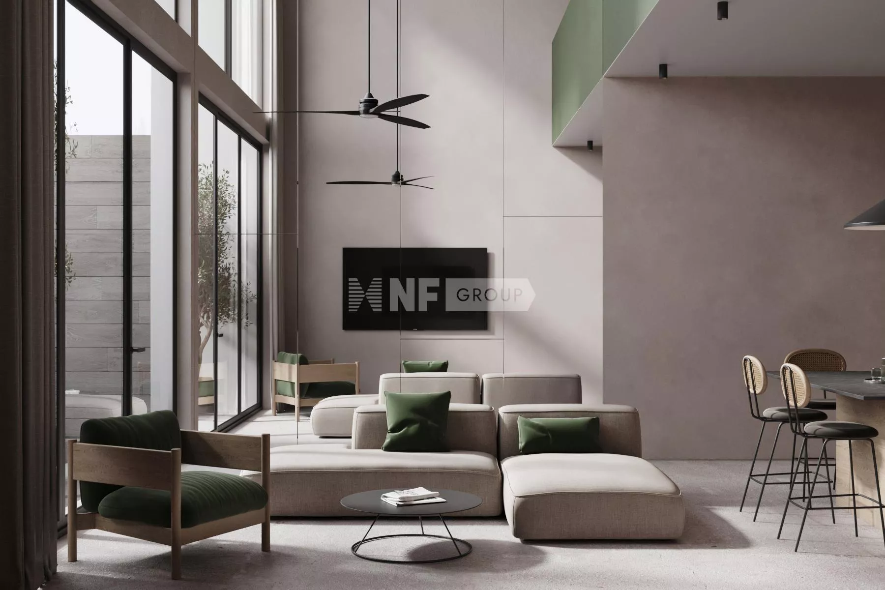 This is a premium housing complex featuring sustainable design solutions. Each of the 11 houses has 3 bedrooms and offers a first-class service that makes you feel the exclusivity of living in a house. This two-level unit has an area of 130 sq.m. with stunning views of the pool and garden. It features a cozy open-plan living and dining area with a fully equipped kitchen. The third bedroom can be converted into a full-fledged office upon the client's request.