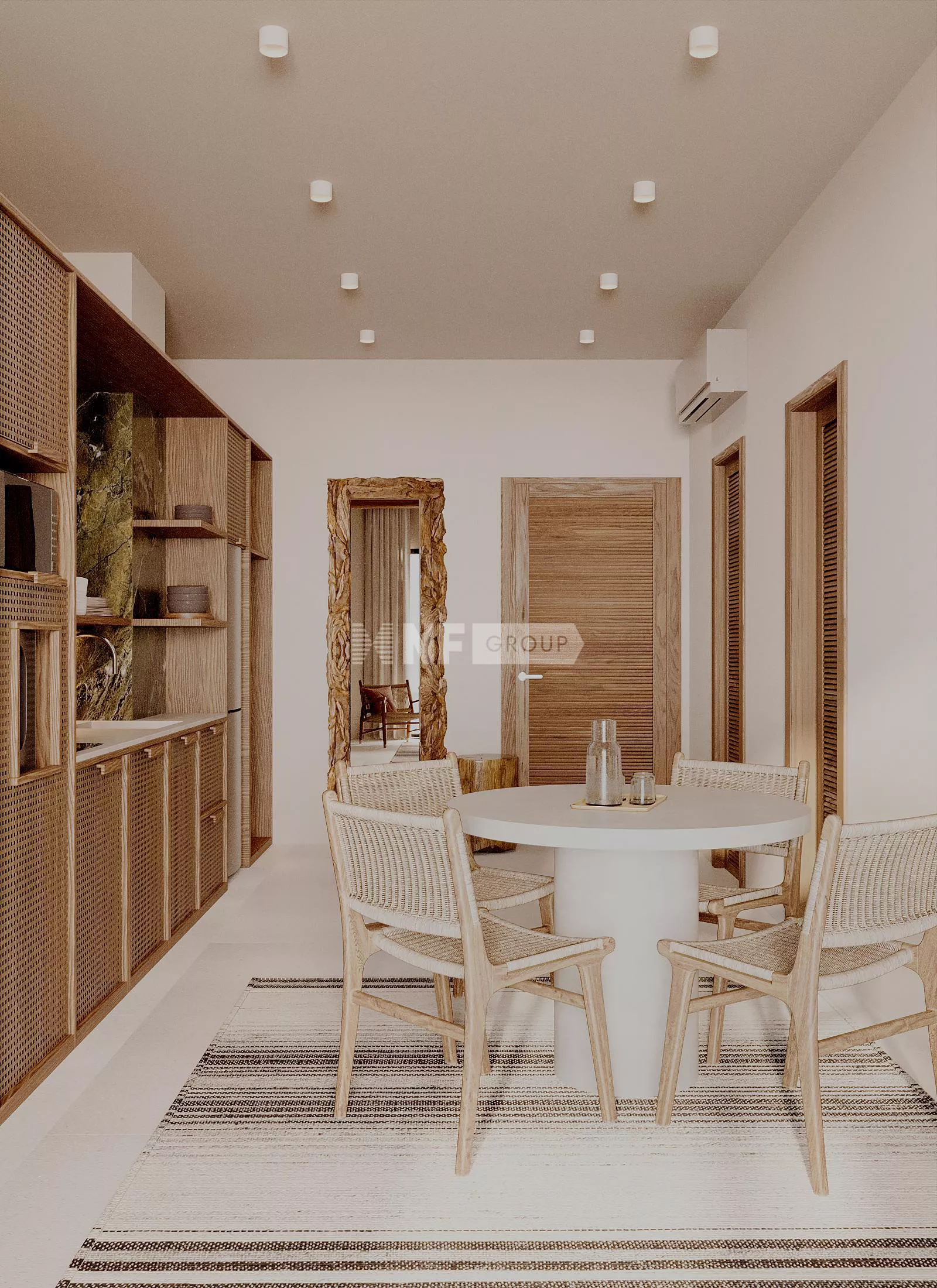 We are pleased to present you this premium residential complex, which is nestled in the southern reaches of Bali, the Bukit peninsula. Amenities of the complex include restaurant and rooftop bar, swimming pool, fitness and spa, running track, outdoor workout zone. The apartment is fully furnished with textile design and decor, the kitchen equipped with household appliances, bathrooms and toilets with furniture and fixtures.