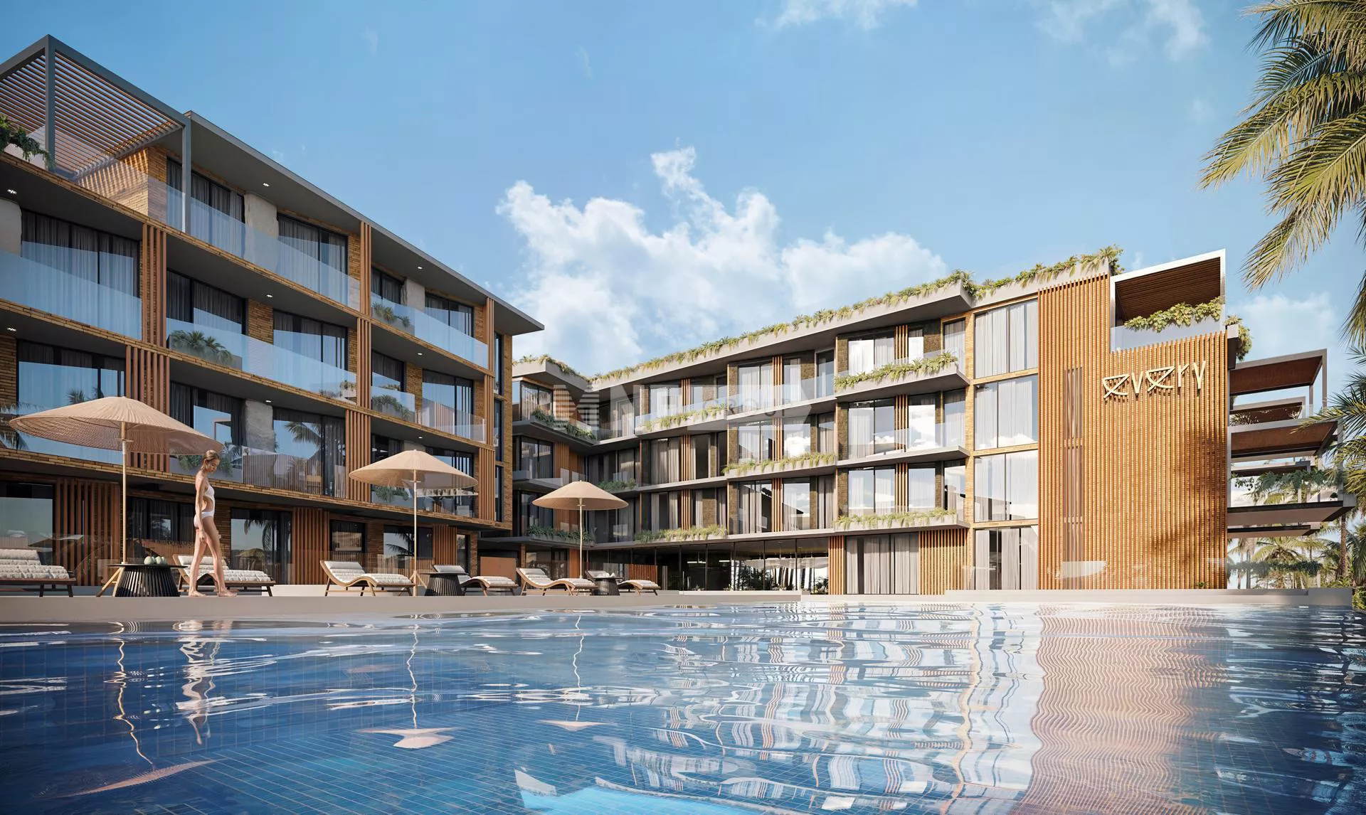We are pleased to present you this premium residential complex, which is nestled in the southern reaches of Bali, the Bukit peninsula. Amenities of the complex include restaurant and rooftop bar, swimming pool, fitness and spa, running track, outdoor workout zone. The apartment is fully furnished with textile design and decor, the kitchen equipped with household appliances, bathrooms and toilets with furniture and fixtures.