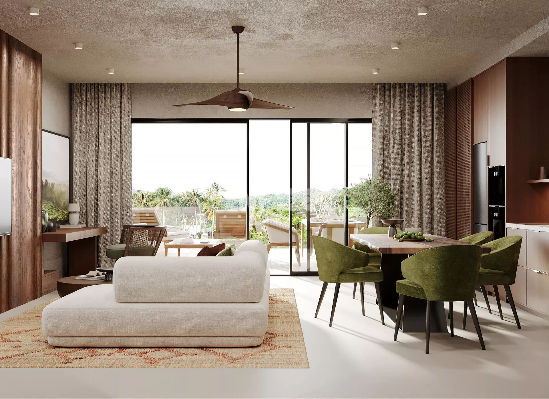 We are pleased to present you this premium residential complex, which is nestled in the southern reaches of Bali, the Bukit peninsula. Amenities of the complex include restaurant and rooftop bar, swimming pool, fitness and spa, running track, outdoor workout zone. The apartment is fully furnished with textile design and decor, the kitchen equipped with household appliances, bathrooms and toilets with furniture and fixtures.