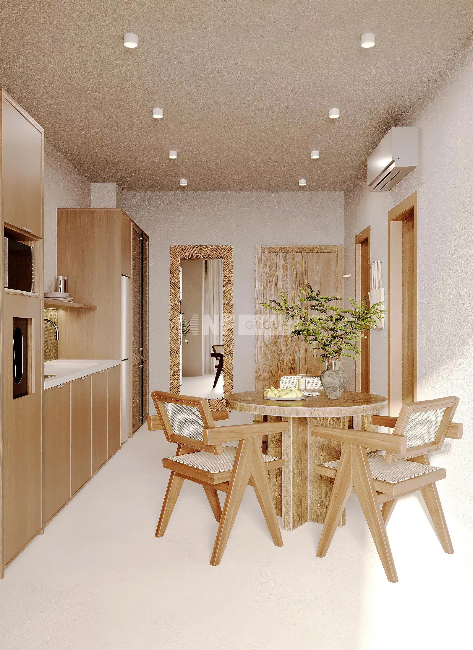 We are pleased to present you this premium residential complex, which is nestled in the southern reaches of Bali, the Bukit peninsula. Amenities of the complex include restaurant and rooftop bar, swimming pool, fitness and spa, running track, outdoor workout zone. The apartment is fully furnished with textile design and decor, the kitchen equipped with household appliances, bathrooms and toilets with furniture and fixtures.
