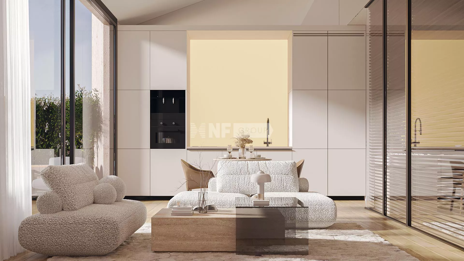 The open-plan kitchen comes fully equipped with premium appliances, while the expansive private terrace — complete with a cozy sofa and dining set — provides the ideal setting for relaxing sunsets or intimate gatherings.