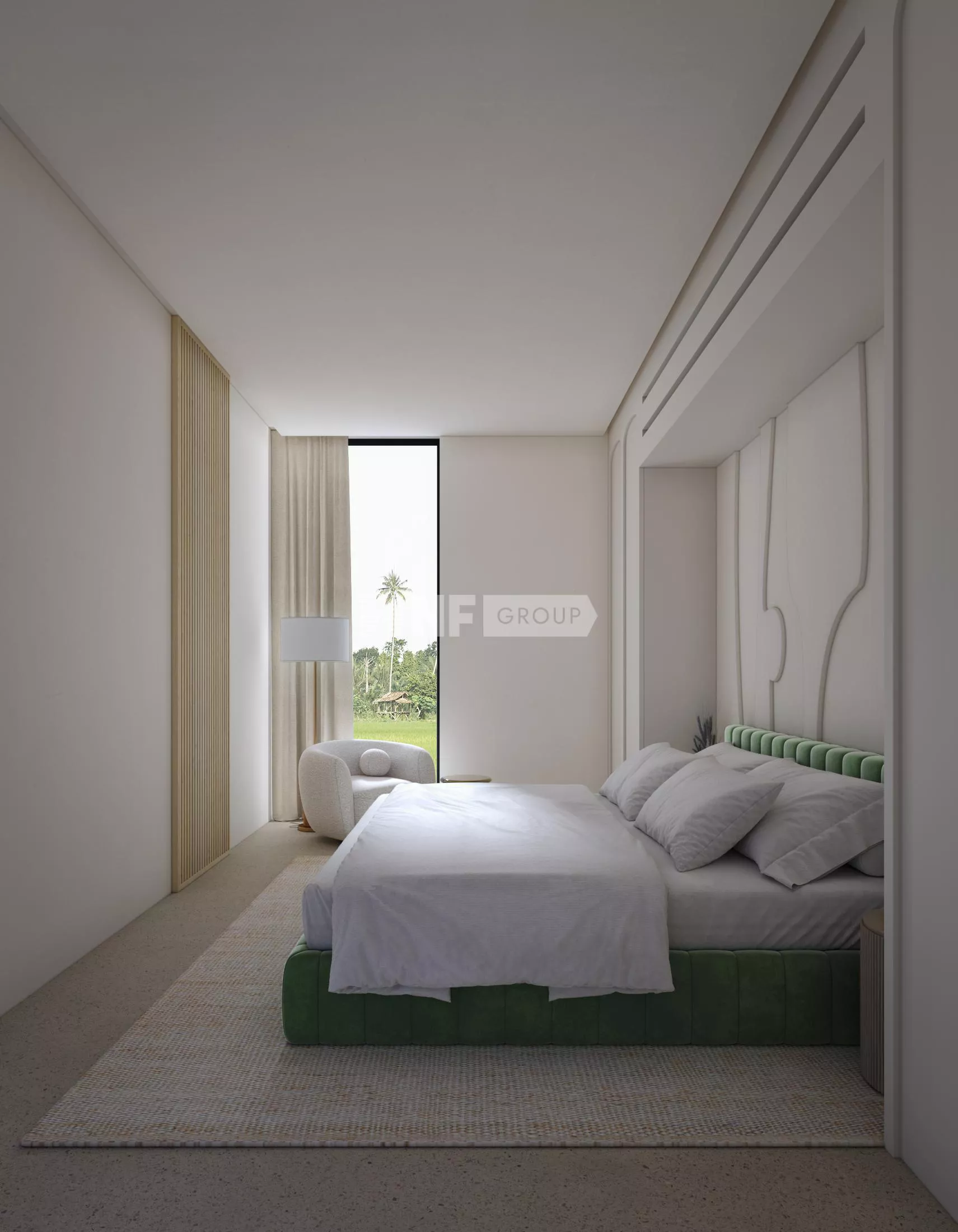 We are pleased to present this villa in the new development in Ubud. The first phase of this project will be completed in 2025 and here the residents will have everything at their doorstep: shopping center, cinema, recreation area with SPA and swimming pool, restaurants. The villa is fully furnished with designer furniture and features spacious living room, kitchen, terrace on the first floor, private swimming pool with jacuzzi, 2 bedrooms with attached bathrooms, office, built-in wardroabs.