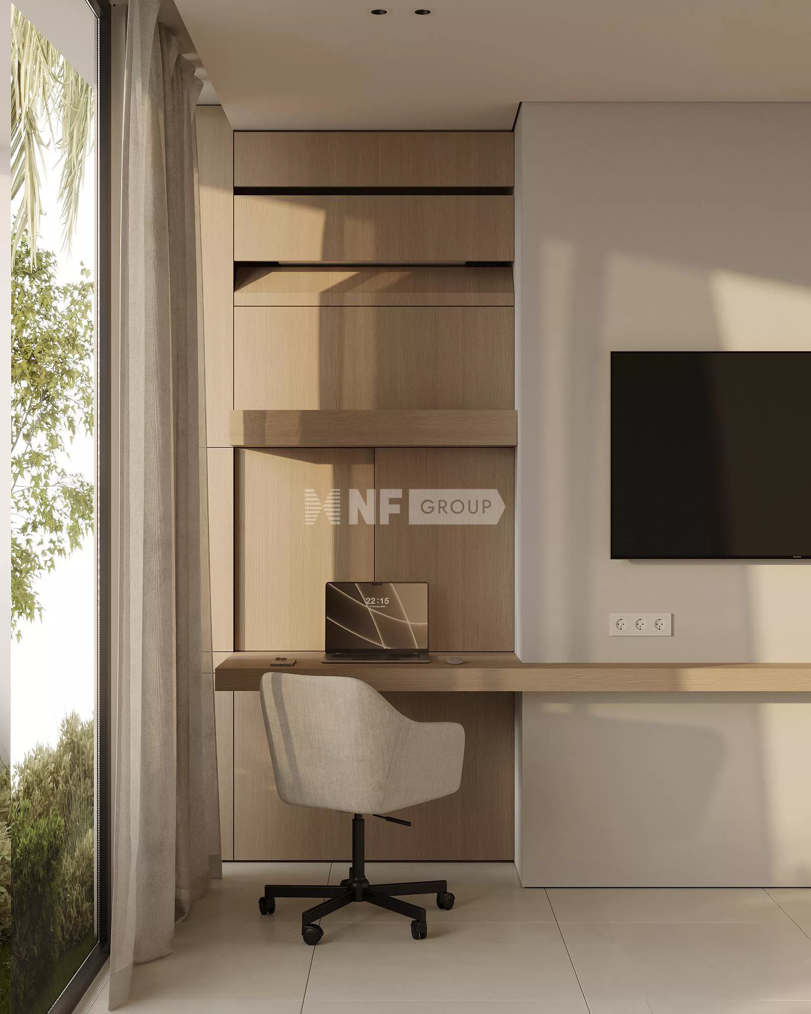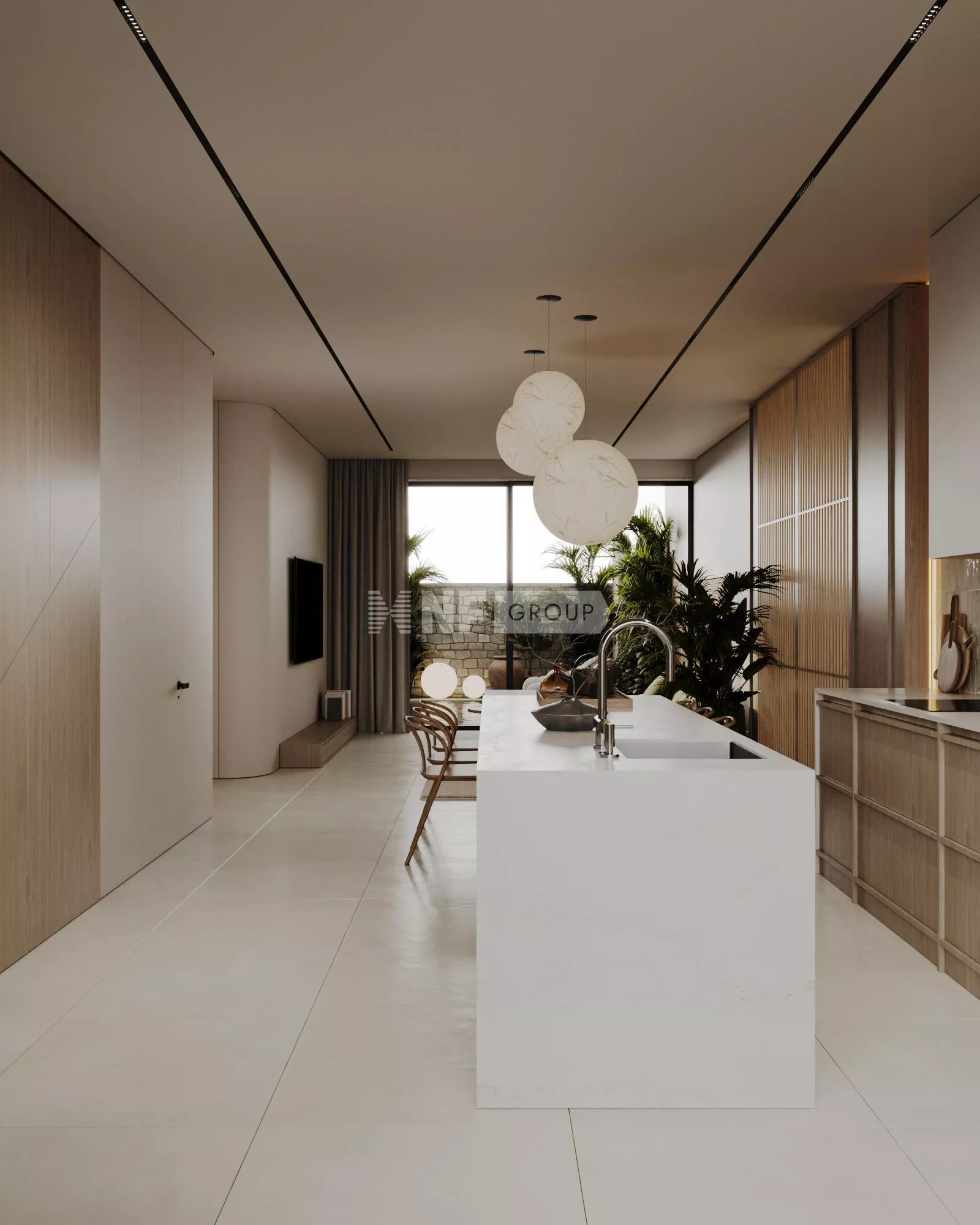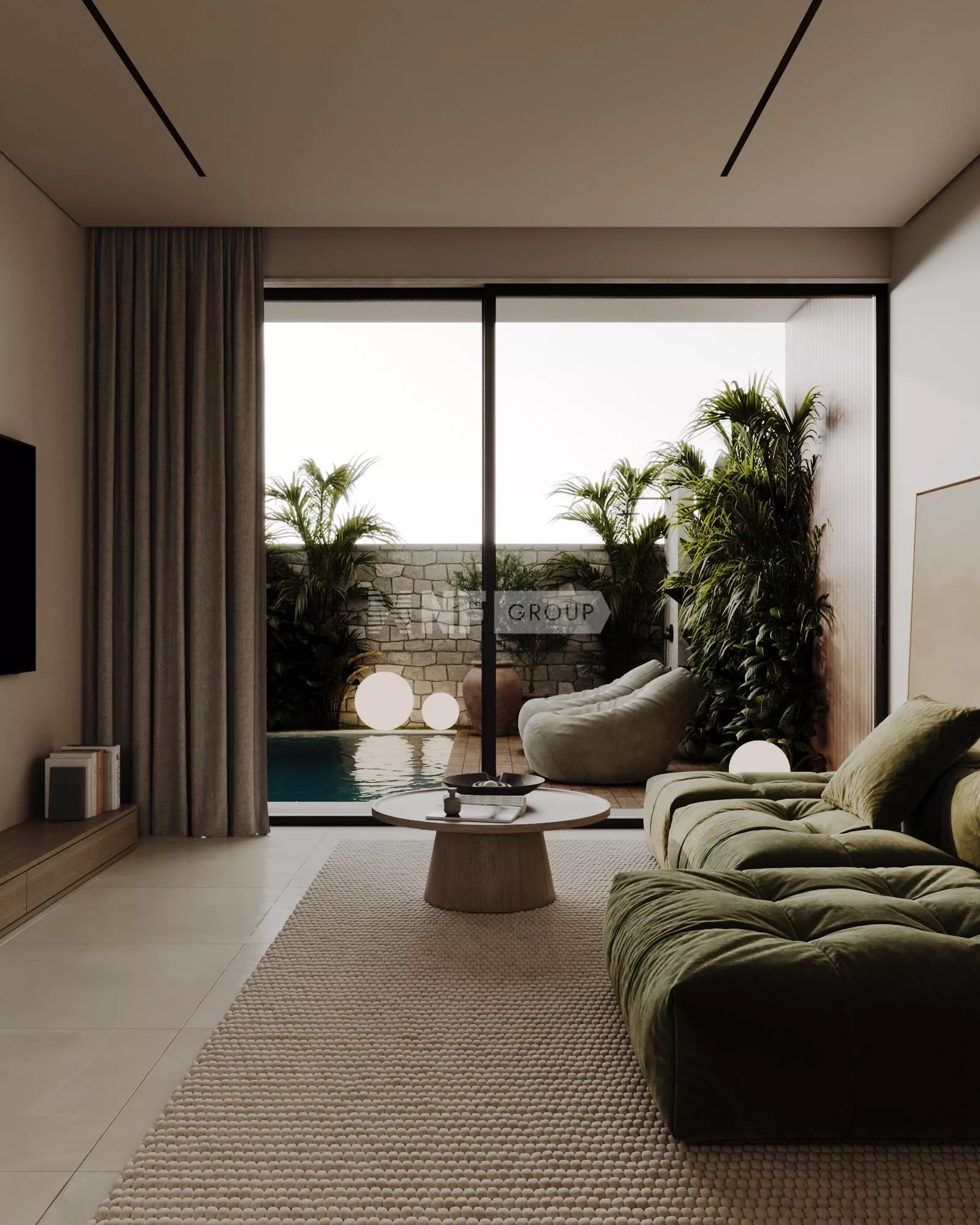 The townhouse comes fully furnished and features a spacious living and dining area, two bedrooms and two bathrooms, as well as a private pool and dedicated parking. The interiors are inspired by Japandi aesthetics, blending refined minimalism, natural textures and thoughtful functionality to create a serene and harmonious home.