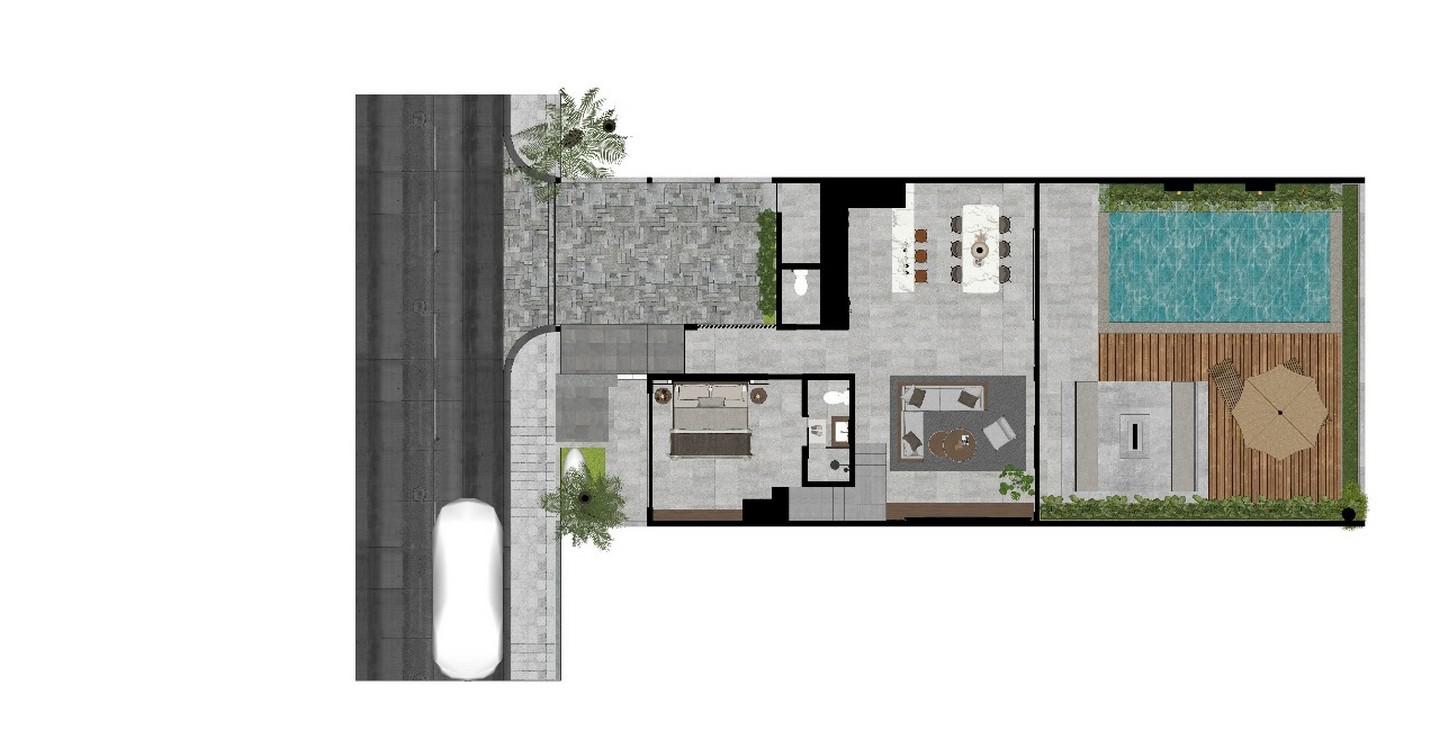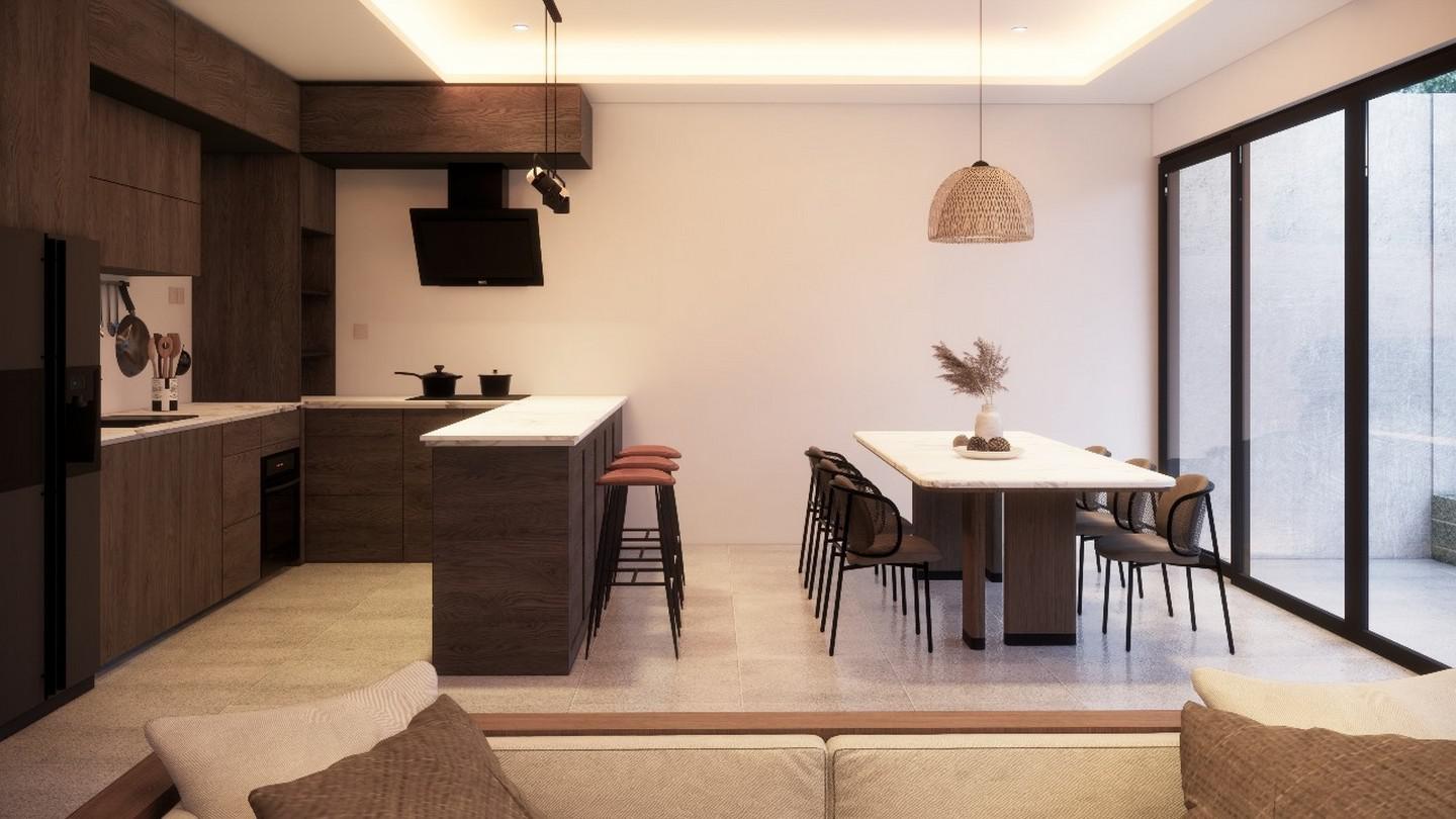 The outdoor area is equally impressive, featuring a private pool and a sunken lounge area. This cozy nook is perfect for relaxing by the pool, entertaining friends, or enjoying a quiet evening outdoors. The villa is built to western standards, ensuring top-quality construction, finishes, and modern amenities.