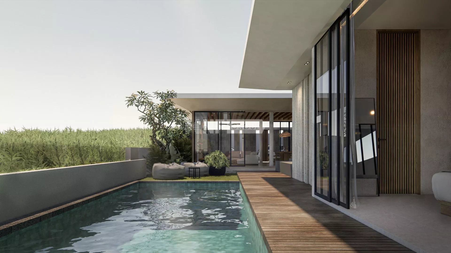 Set against the backdrop of lush rice fields with views of Bali’s iconic volcanoes on a clear day, this modern off-plan villa is tucked away in the peaceful village of Tumbak Bayuh. The neighbourhood is serene and green, yet just moments away from all the lifestyle attractions of Canggu.
