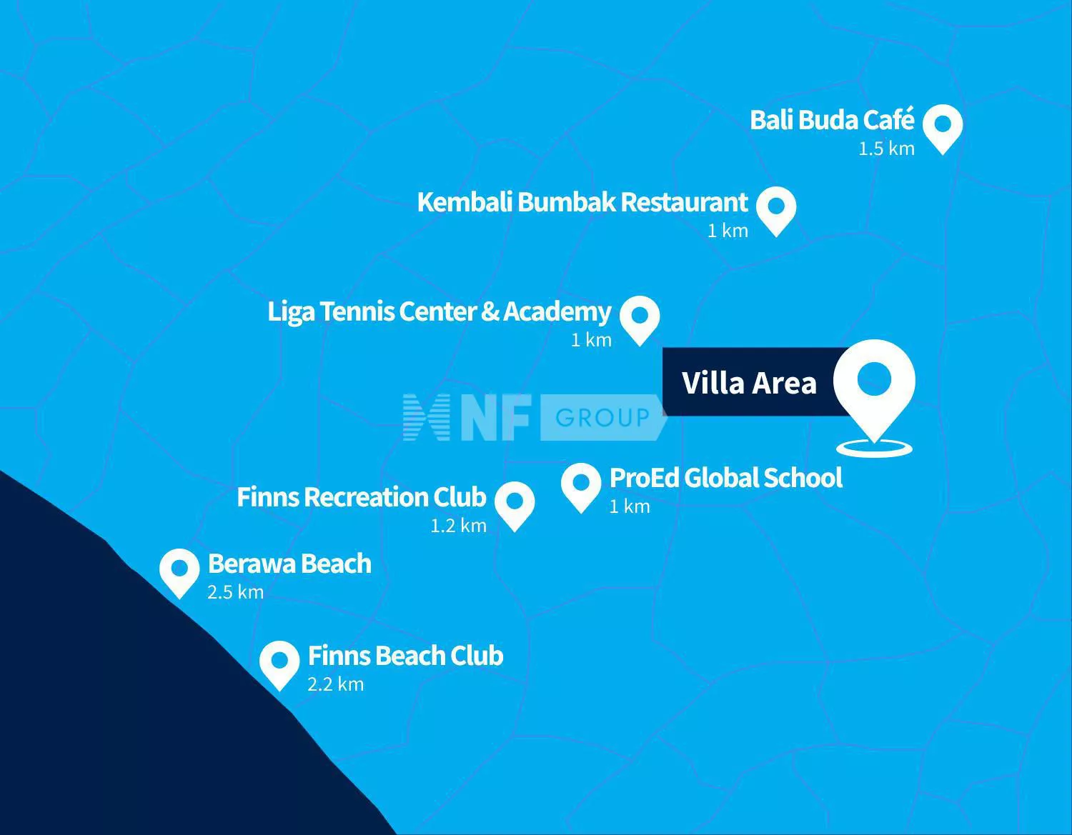 This beautifully crafted freehold villa is set for completion at the end of 2024, in the highly desirable Umalas neighborhood—an area known for its million-dollar residences, charming village atmosphere, and vibrant expat community. Here, stylish cafés, restaurants, and boutiques are just around the corner, while international schools such as Canggu, French, Montessori, and Pro Ed are within easy reach. The villa is also just minutes from Berawa and Batu Belig beaches, with Seminyak and Canggu’s best dining and lifestyle spots a short drive away. A convenient 10-minute shortcut brings you straight to Berawa.