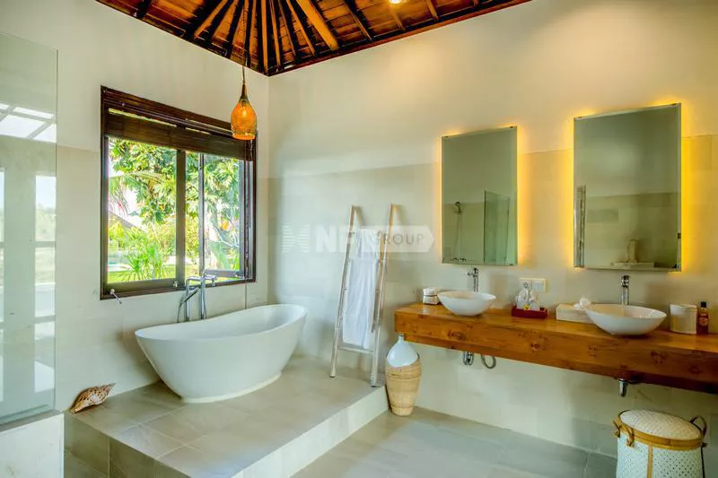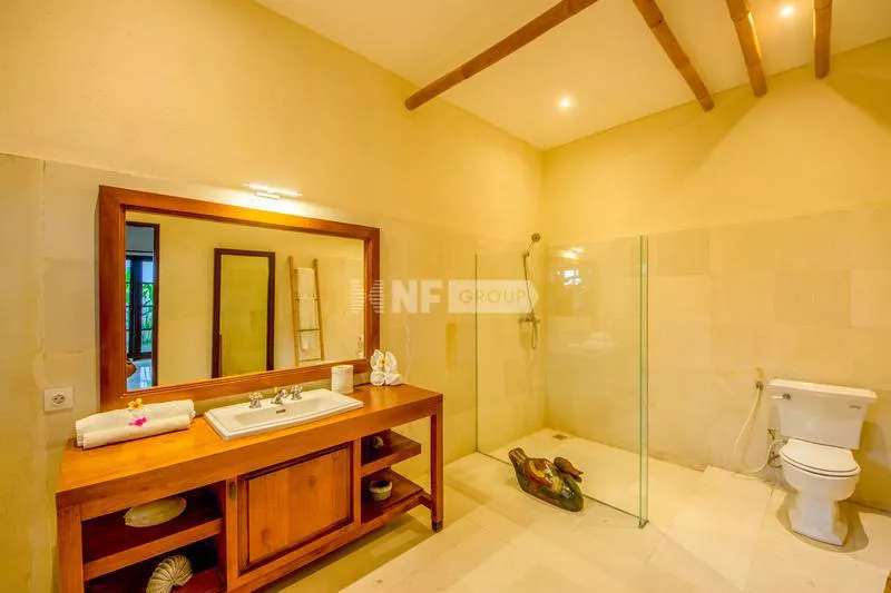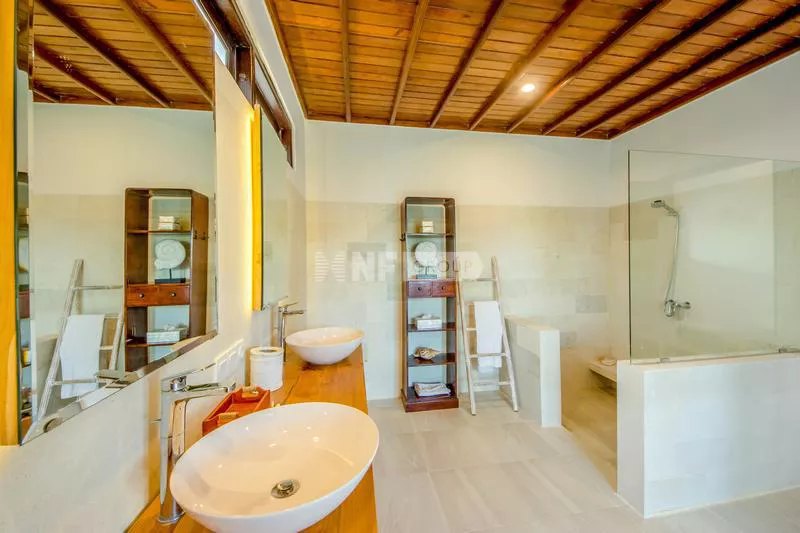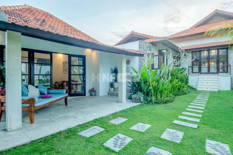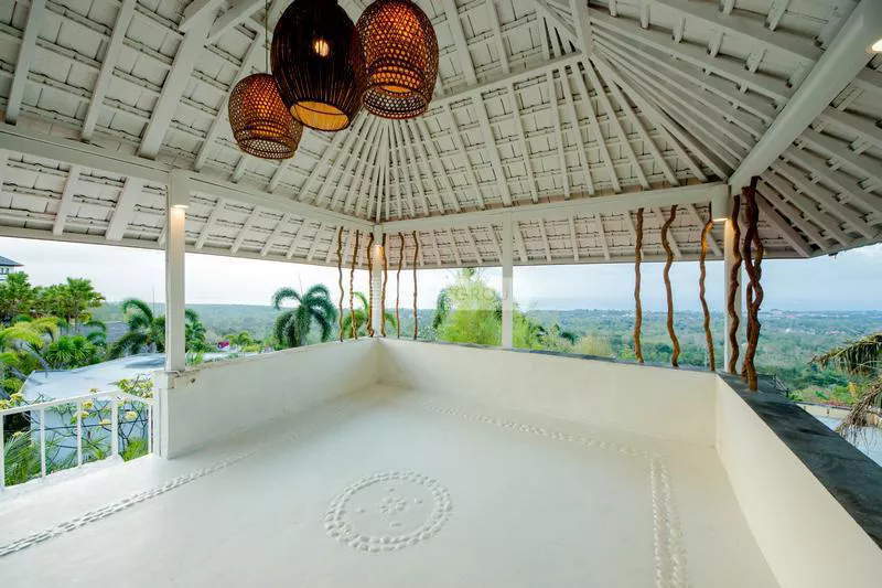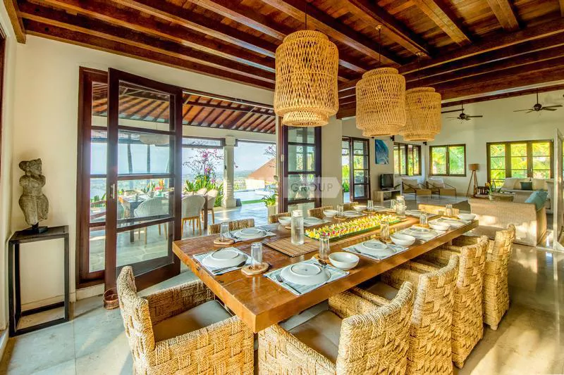 At its heart lies an elegant, multi-level villa spanning 422 sqm. With five expansive ensuite bedrooms, each fully air-conditioned, the home blends traditional Balinese craftsmanship with modern comfort. Flowing gardens, lotus ponds, shaded terraces, and a dramatic 11-metre infinity pool frame breathtaking views across Jimbaran Bay, Bali’s majestic mountains, and the island’s world-famous sunsets.