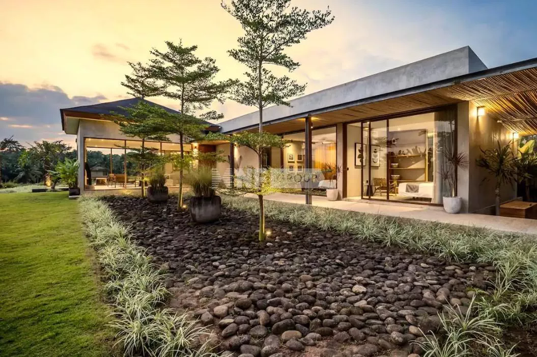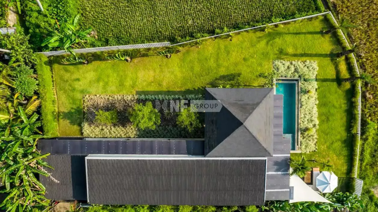 In the peaceful village of Mas, just minutes from the heart of Ubud, this contemporary single-level villa brings together modern living and the timeless beauty of Bali’s rice fields. Set on 785 sqm of land with a 230 sqm building, the property comes with a secure freehold (HGB) title—making it an excellent choice for a private residence or a smart long-term rental investment.