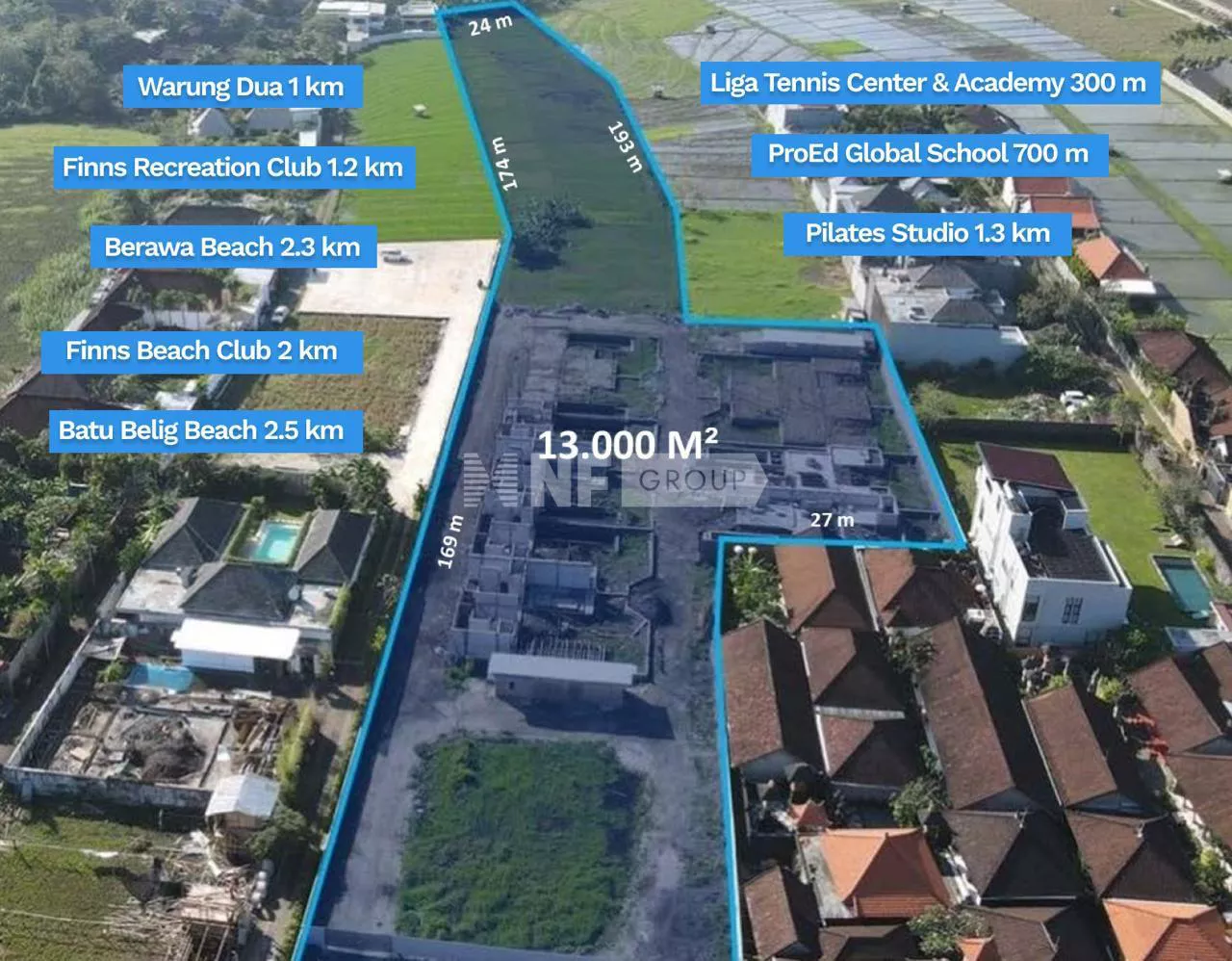 In the sought-after neighbourhood of Bumbak, Umalas, this expansive 13,000 sqm (1.3 Ha) landholding presents a rare opportunity for visionary developers and investors. Available on a 30-year leasehold with an option to extend, the rectangular plot (approx. 32m x 400m) offers the scale and flexibility to bring ambitious, high-end projects to life.