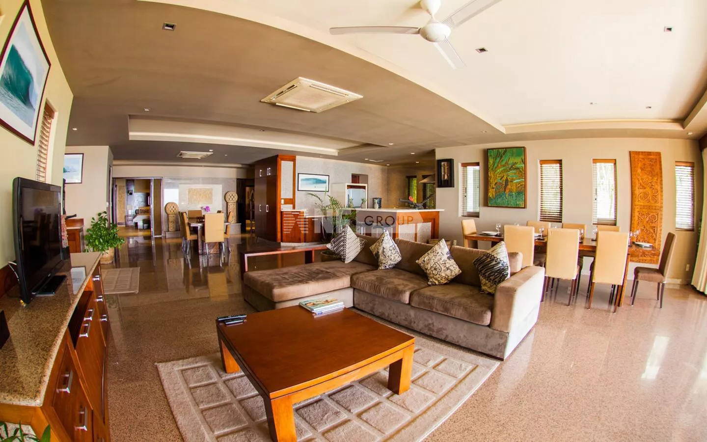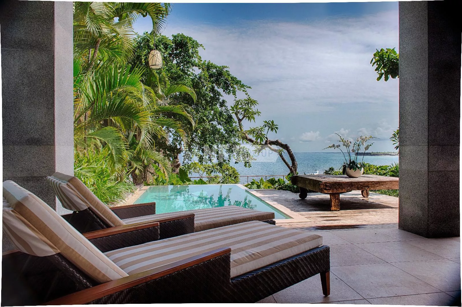 Features include the fully equipped 5 star standard spa, sauna and steam room, gym, and home theatre and an eclectic mix of Indonesian hard woods and artifacts, in the interior design throughout the estate, play compliment to one of the best ocean views in Bali, with 55 metres of 180 degree ocean frontage.
