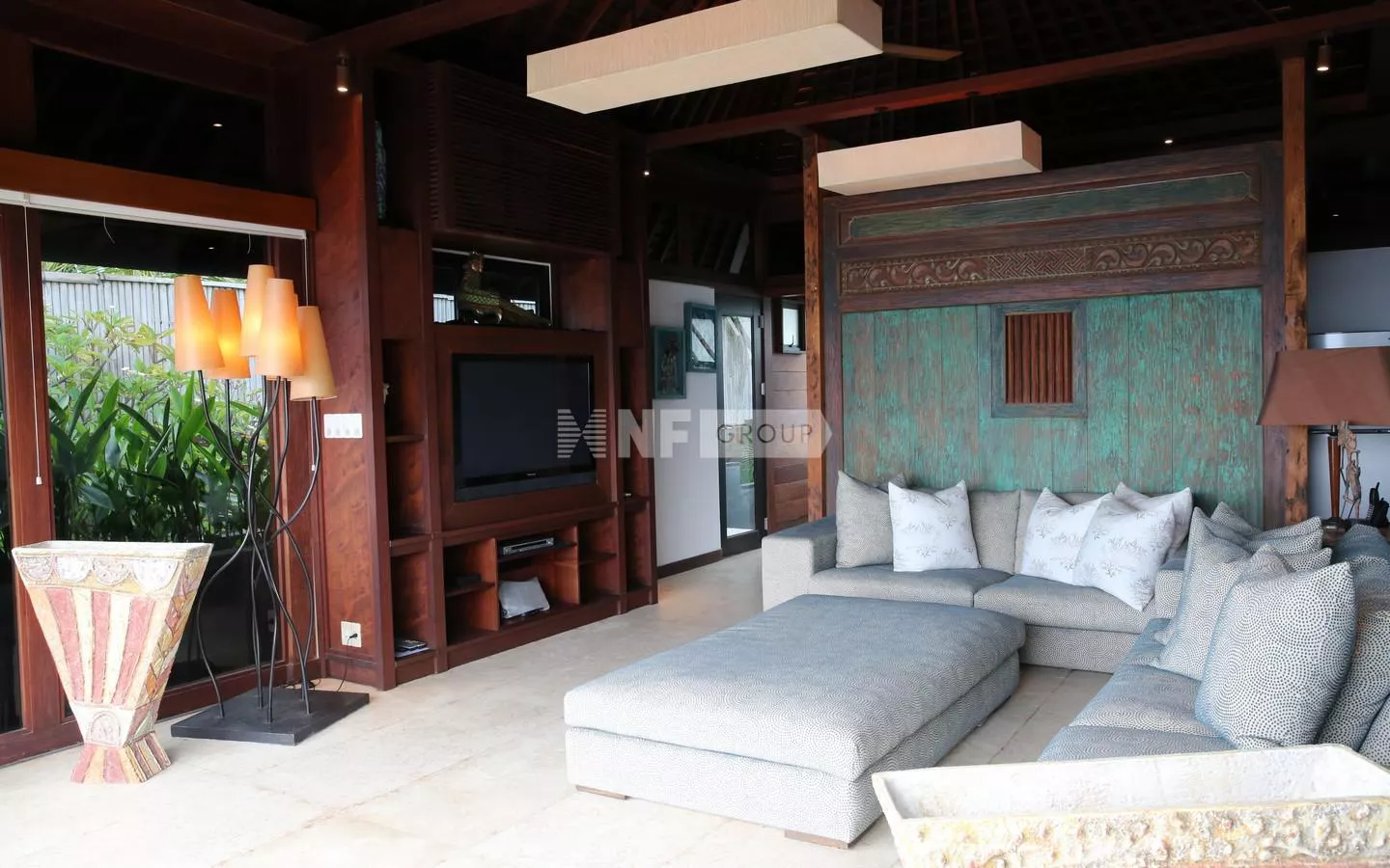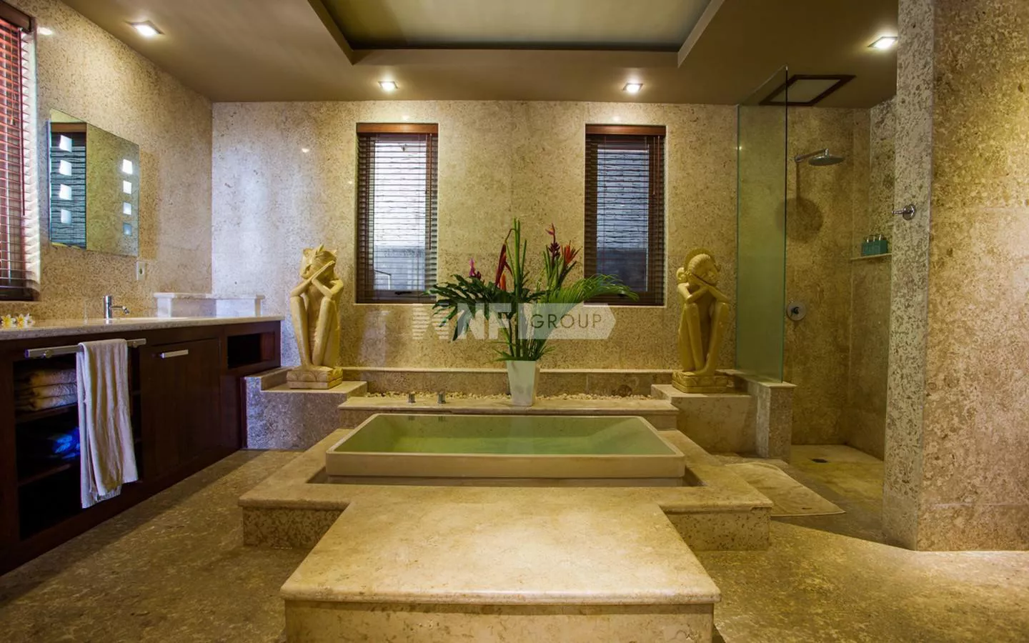 Along with its exceptional location and only 10 minutes by helicopter and 30 minutes by car from the International airport in South Bali, this fine estate was designed, engineered and built to the highest international standards. There is ample attention to detail throughout the estate, ranging from intricate wooden finishing and the imported marble, to the state of the art kitchen equipped with Wolf stove and Sub Zero refrigerator, and the high end German home theatre room.