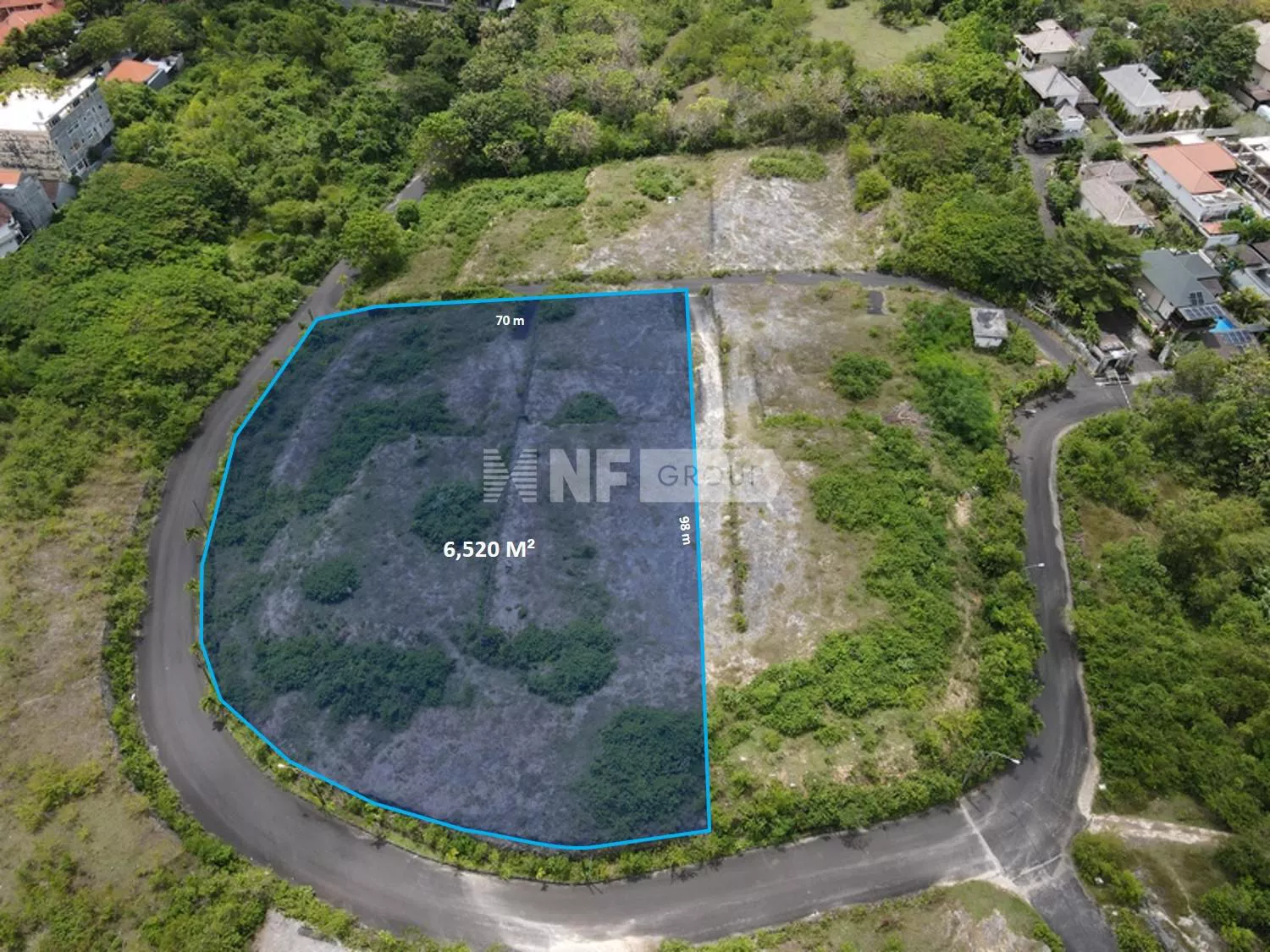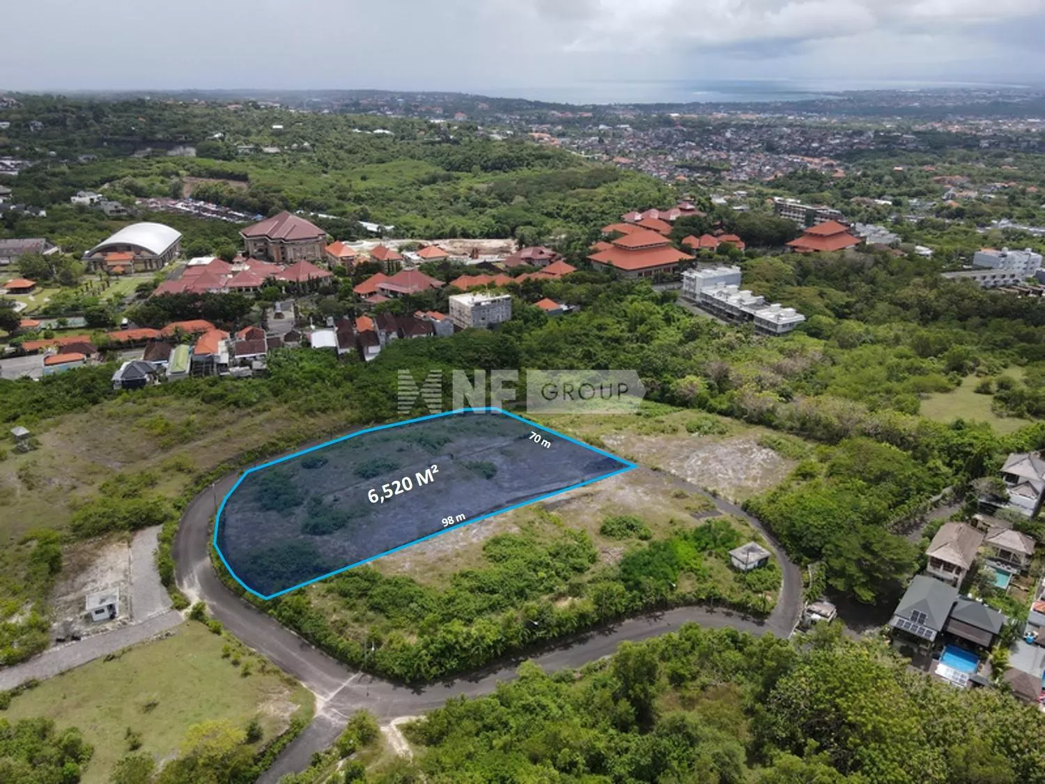 Ocean view land on a plateau in the hills above Nusa Dua. Over 6520 sqm of land offers amazing development opportunities. Incredible 270-degree views are afforded by the high position of this land.