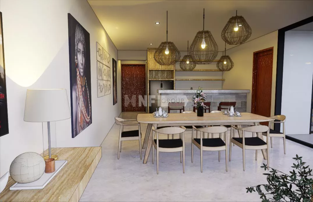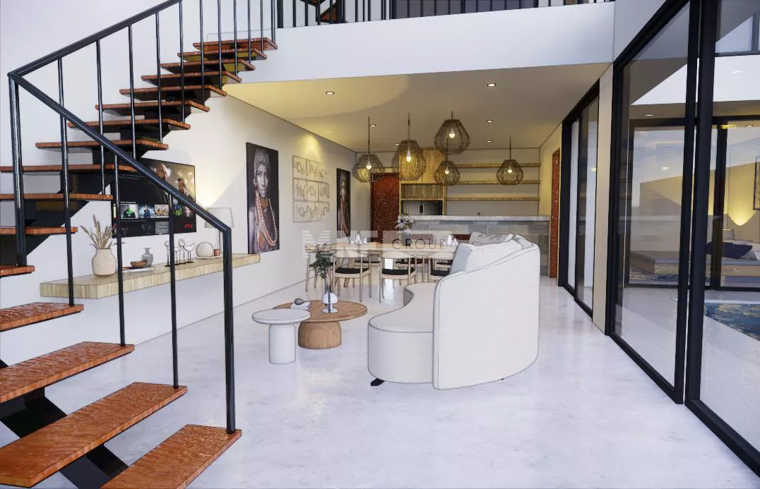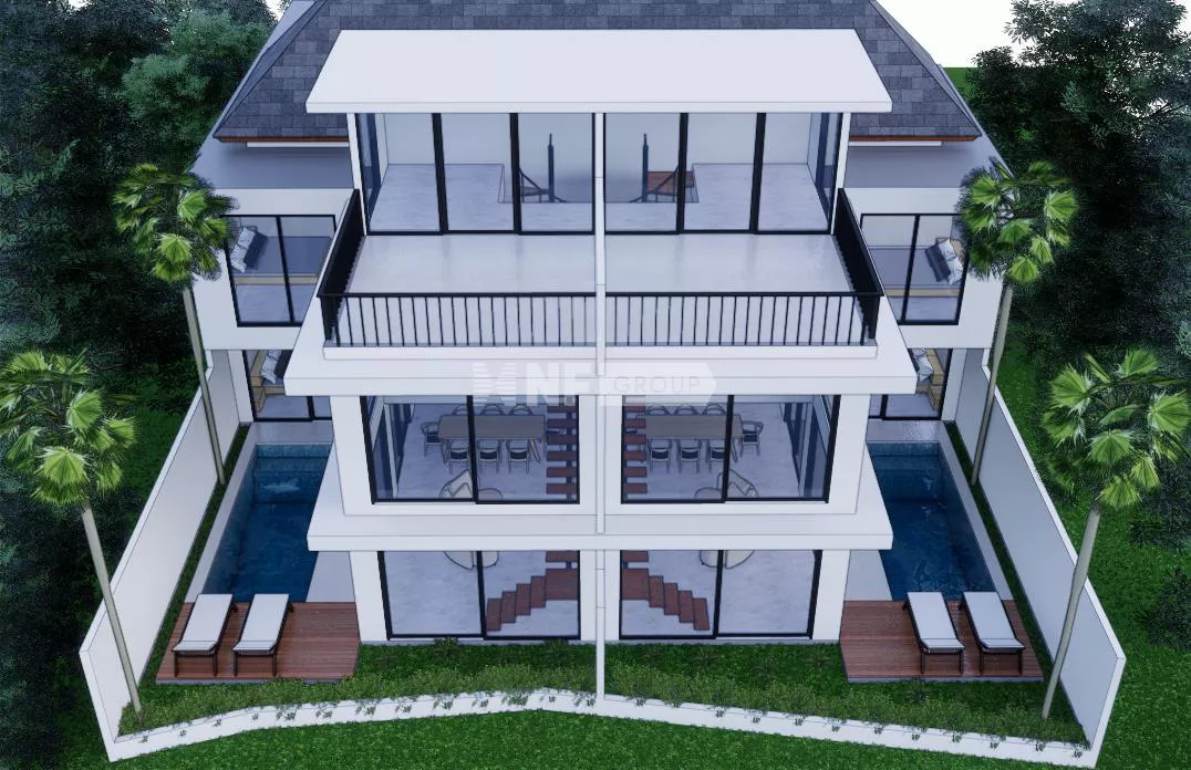 Set across 154.8 sqm of land with a total building size of 95.17 sqm, This villa is designed in a modern minimalist style with shades of bright white and soft colors. Floor-to-ceiling windows invite abundant natural light into the living spaces, creating a sense of openness and tranquility. The interiors boast open-plan living with western-standard kitchens and stylish dining areas, all fully furnished and ready for occupancy. Private swimming pools, communal parking for three cars, and well-maintained tropical gardens enhance the appeal of these villas.