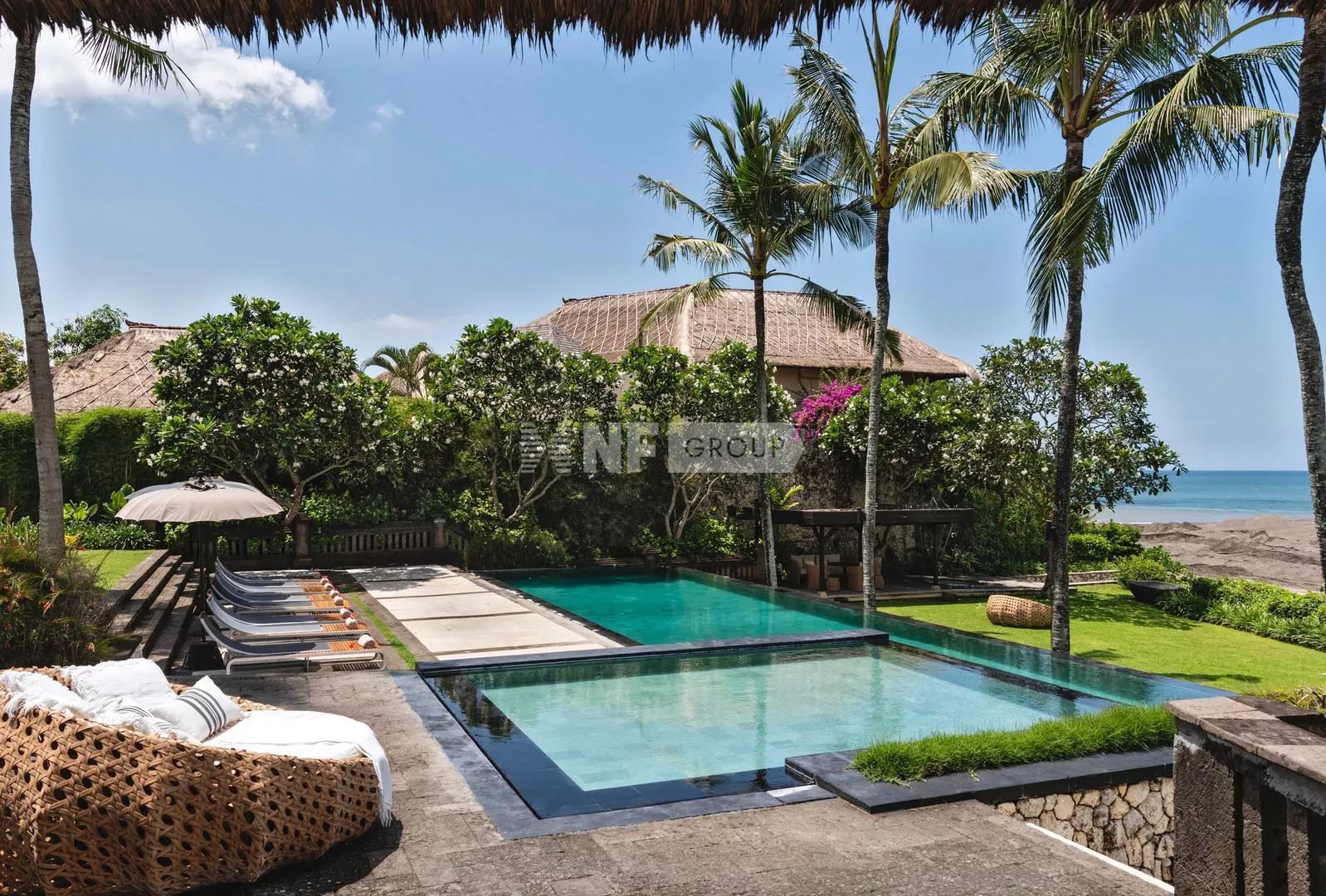 Thoughtfully designed for convenience and functionality, the property includes staff quarters with ample storage, an office, and dedicated spaces for linen and dry goods. Set within a secure, five-villa gated estate, the villa provides both exclusivity and peace of mind.The beachfront location ensures unparalleled ocean views and direct access to Pererenan’s black sand shores, while the property’s expansive grounds offer endless opportunities for entertaining or simply enjoying Bali’s natural beauty. Extremely well-maintained and move-in ready, this villa is a rare gem, combining traditional elegance with modern comforts.