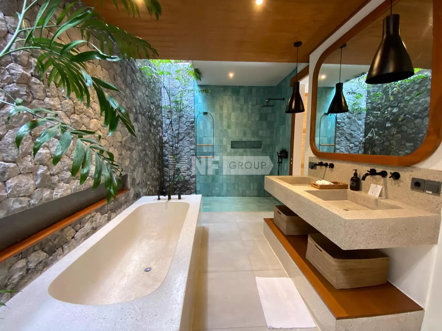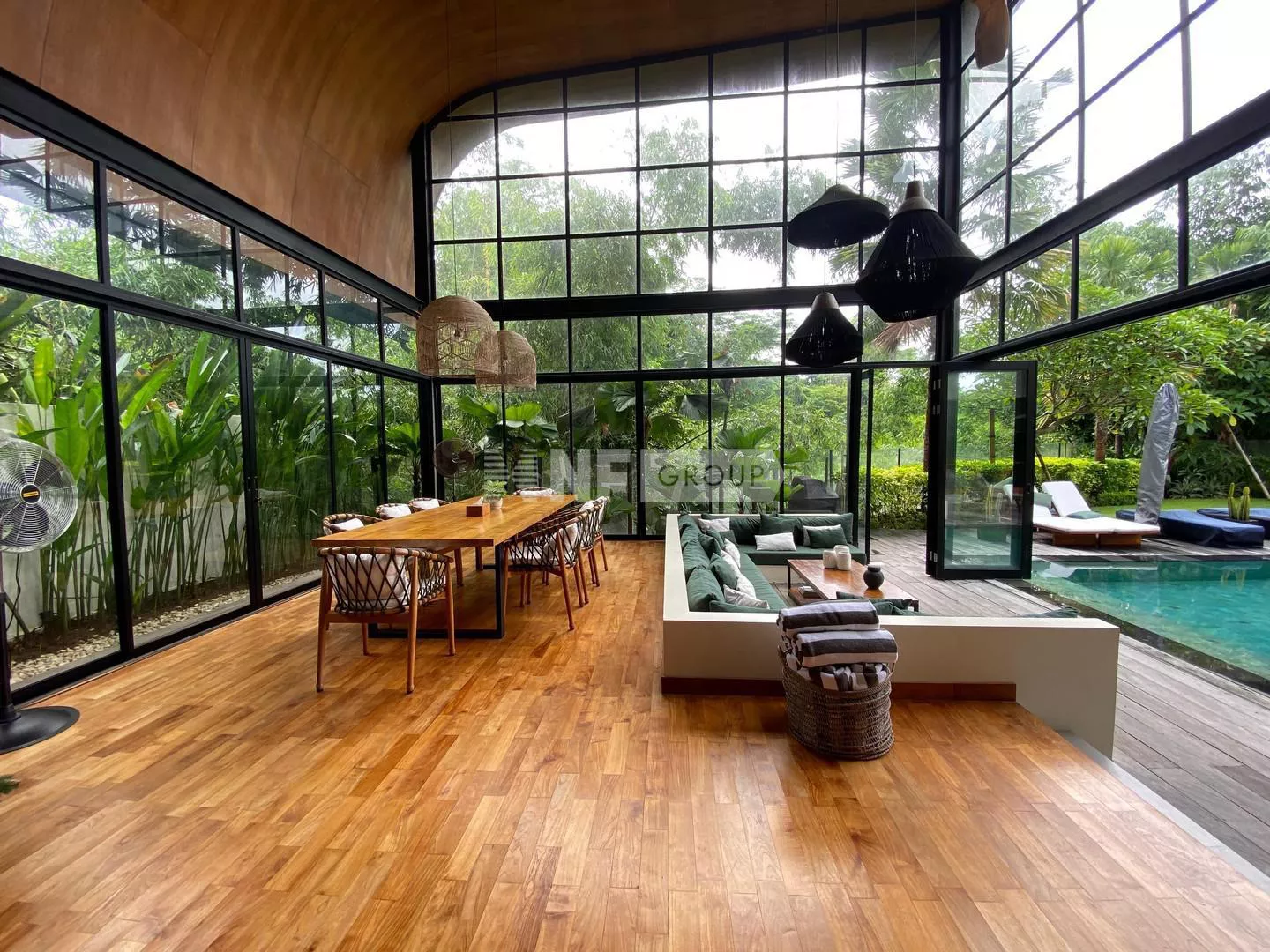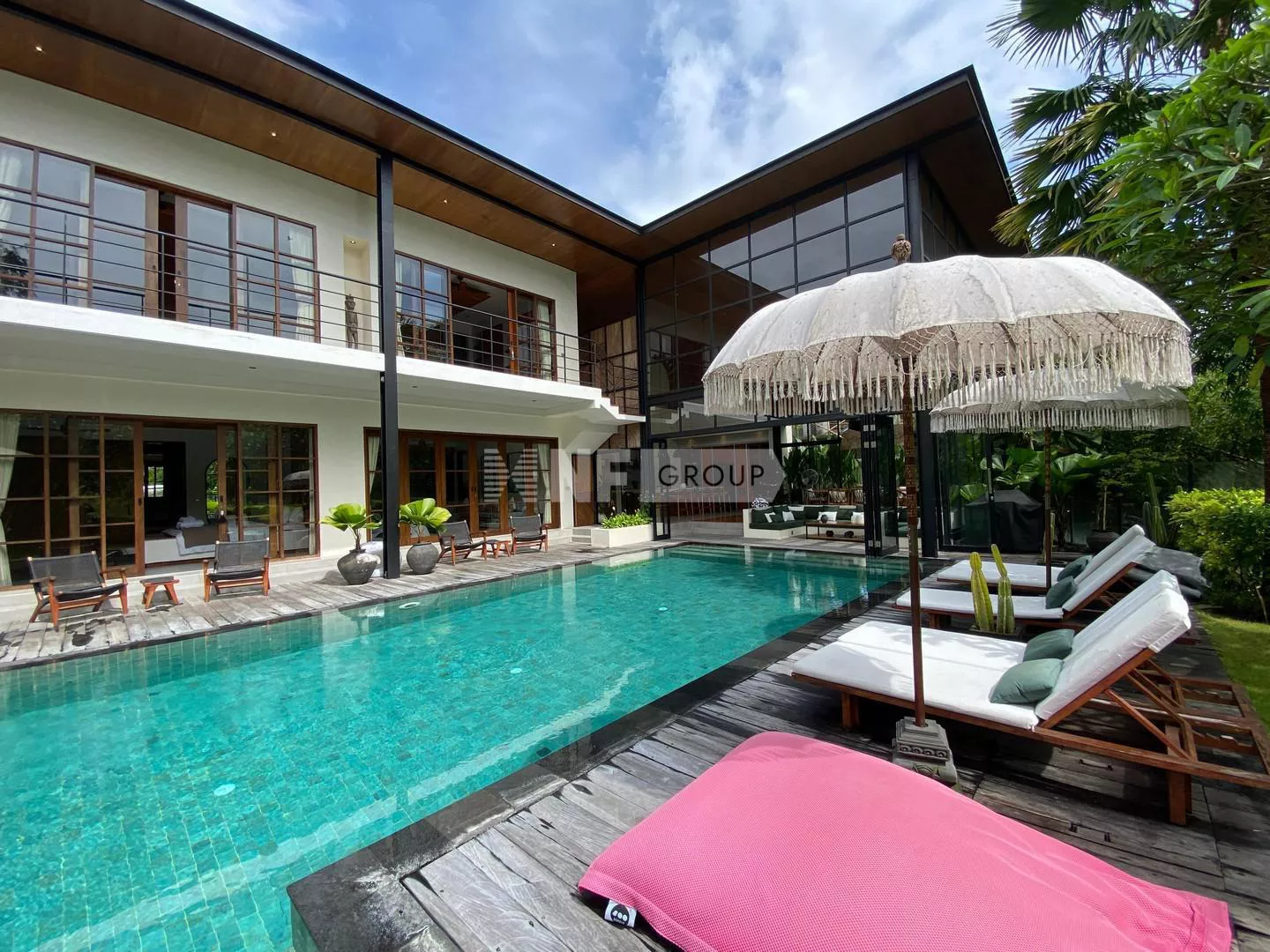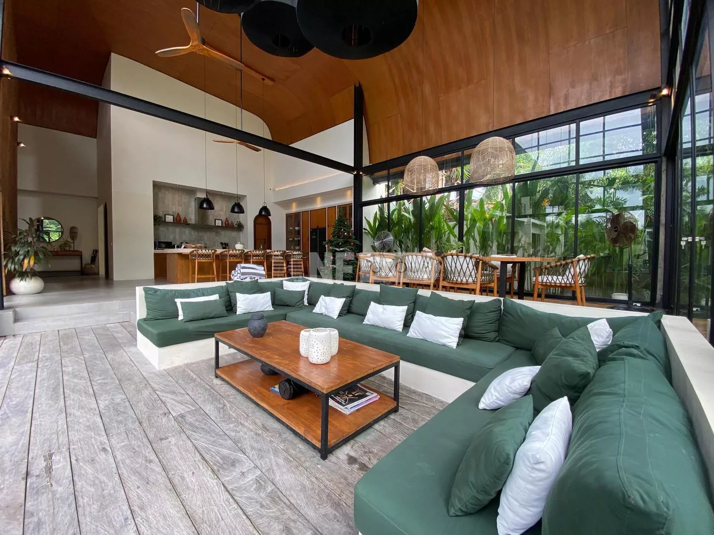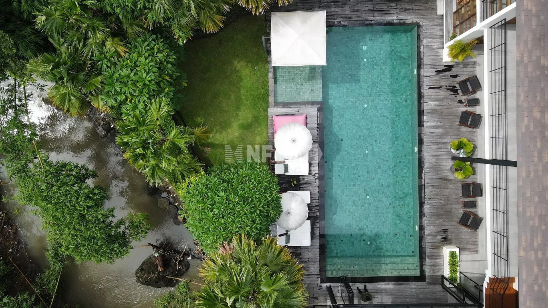 Situated in the sought-after enclave of Pererenan, Canggu, this stunning 5-bedroom luxury villa embodies modern tropical elegance. Spanning 606 square meters of land with a substantial 472 square meter build, the villa offers a seamless blend of bright, wood-accented interiors and the natural beauty of its lush surroundings. Constructed in 2020, the residence showcases a refined architectural design that harmonizes with its scenic river-bordered setting.