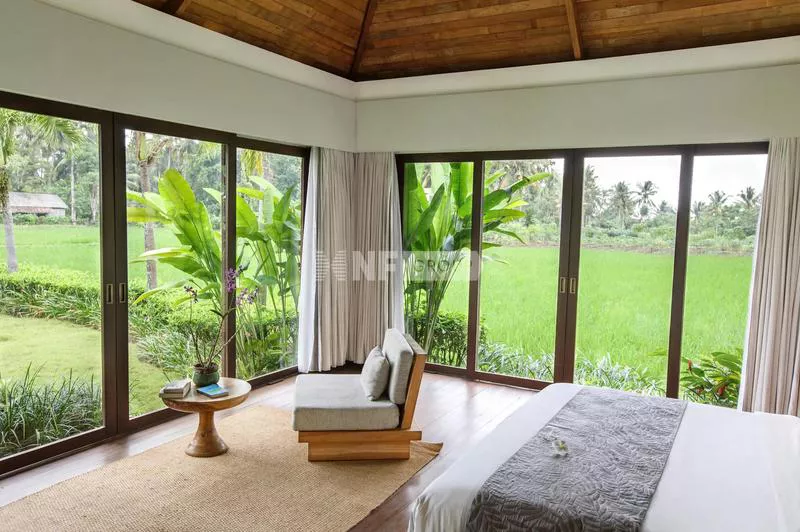 Recently renovated in 2023, this exceptional property in peaceful Tumbak Bayuh offers a rare opportunity to secure a grand residence surrounded by lush greenery, panoramic rice field, and sunset views. Located in a neighbourhood of luxury villas, it presents the perfect setting as a prestigious family home or an elegant shared retreat. Set on a generous 1100 sqm of land, this stunning 4-bedroom villa is designed in a contemporary colonial style with luxurious furnishings and fittings throughout.