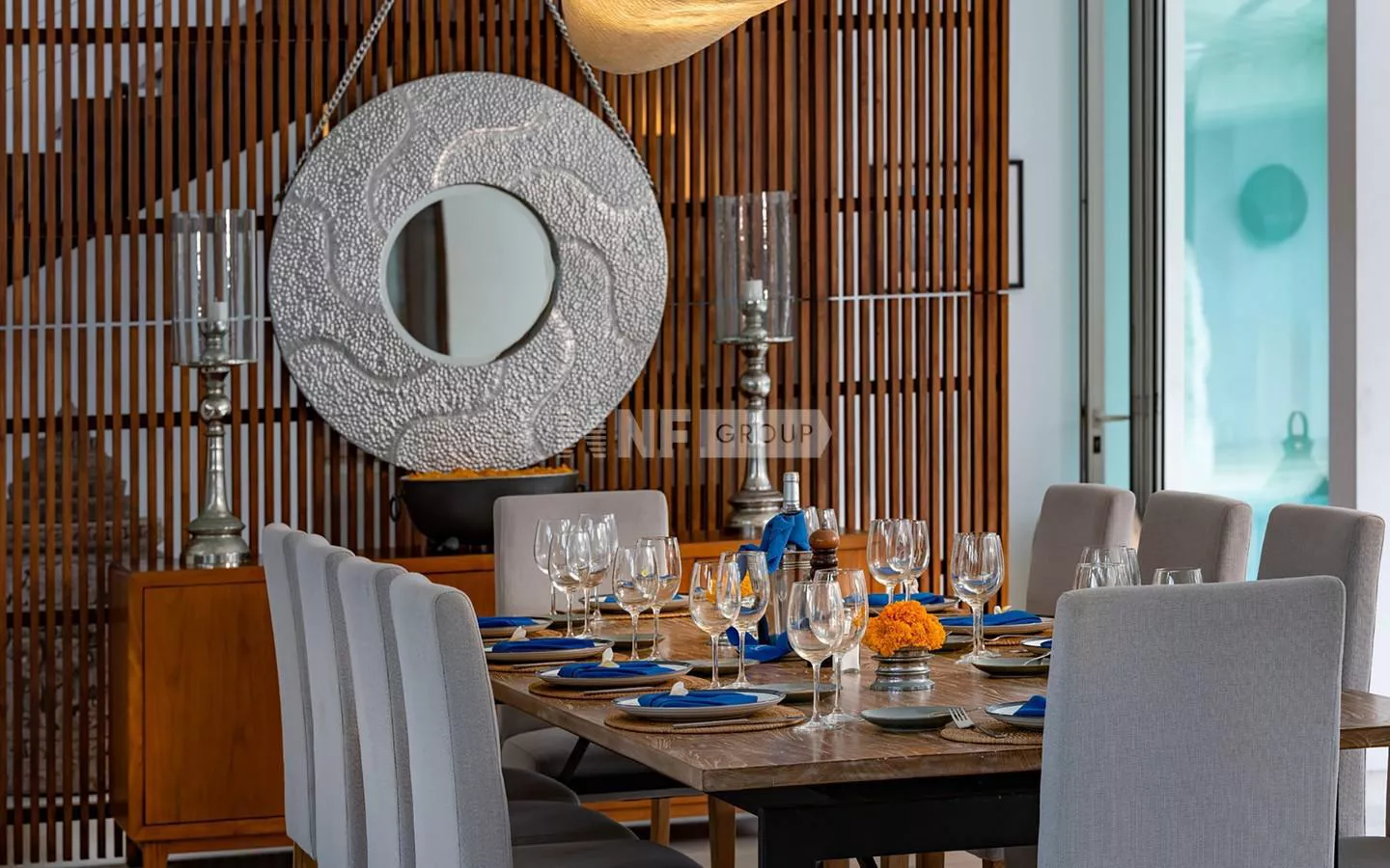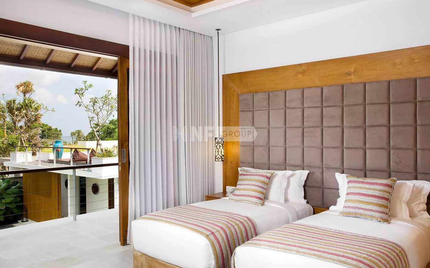 This elegant 5-bedroom villa, located in the heart of Petitenget, combines contemporary style with everyday comfort. The villa is designed for relaxation and entertainment, featuring an 18-metre swimming pool, a fully equipped gym, a newly renovated kitchen, luxurious bathrooms and a sunny terrace for relaxing. Evenings are best spent on the rooftop terrace, which offers stunning views of rice fields, the sparkling ocean and Bali's majestic volcanoes. An inconspicuous garden gate leads along a hidden path directly to the beach. The villa is ideally located in an area known for its beach clubs, fine restaurants, lively bars and boutiques.