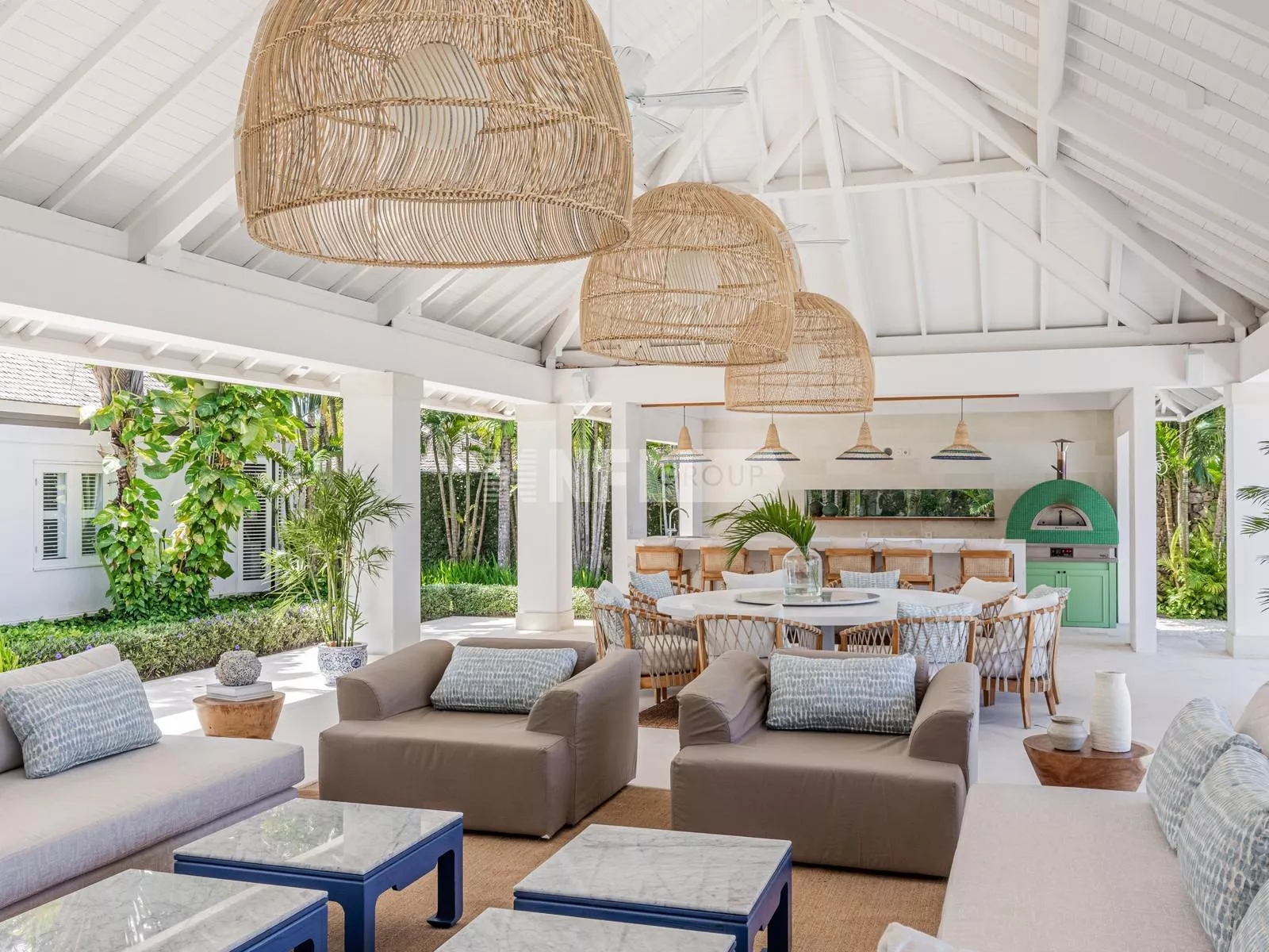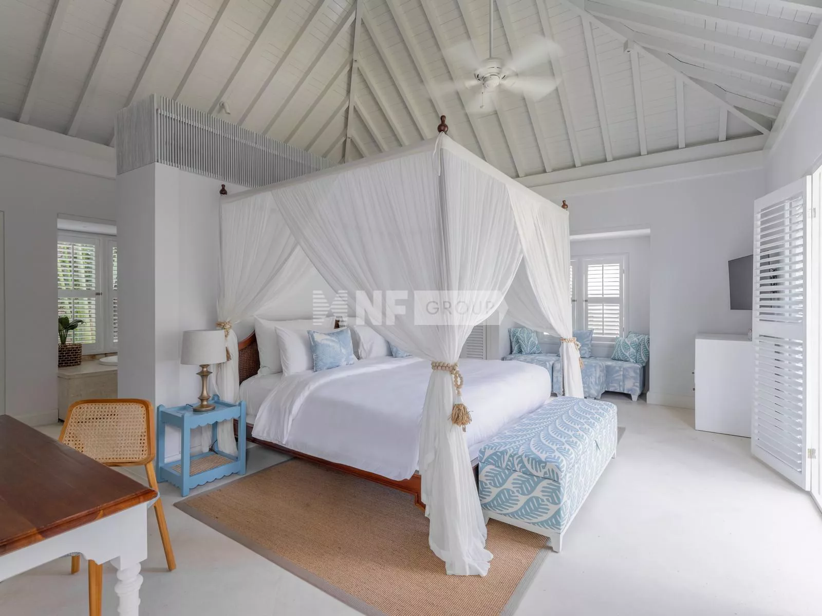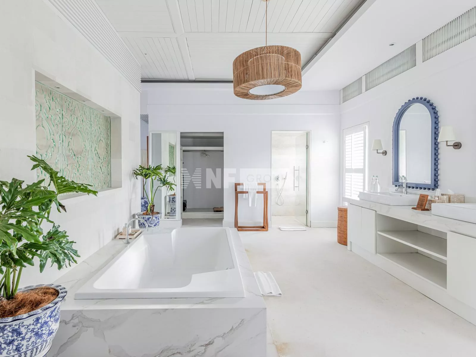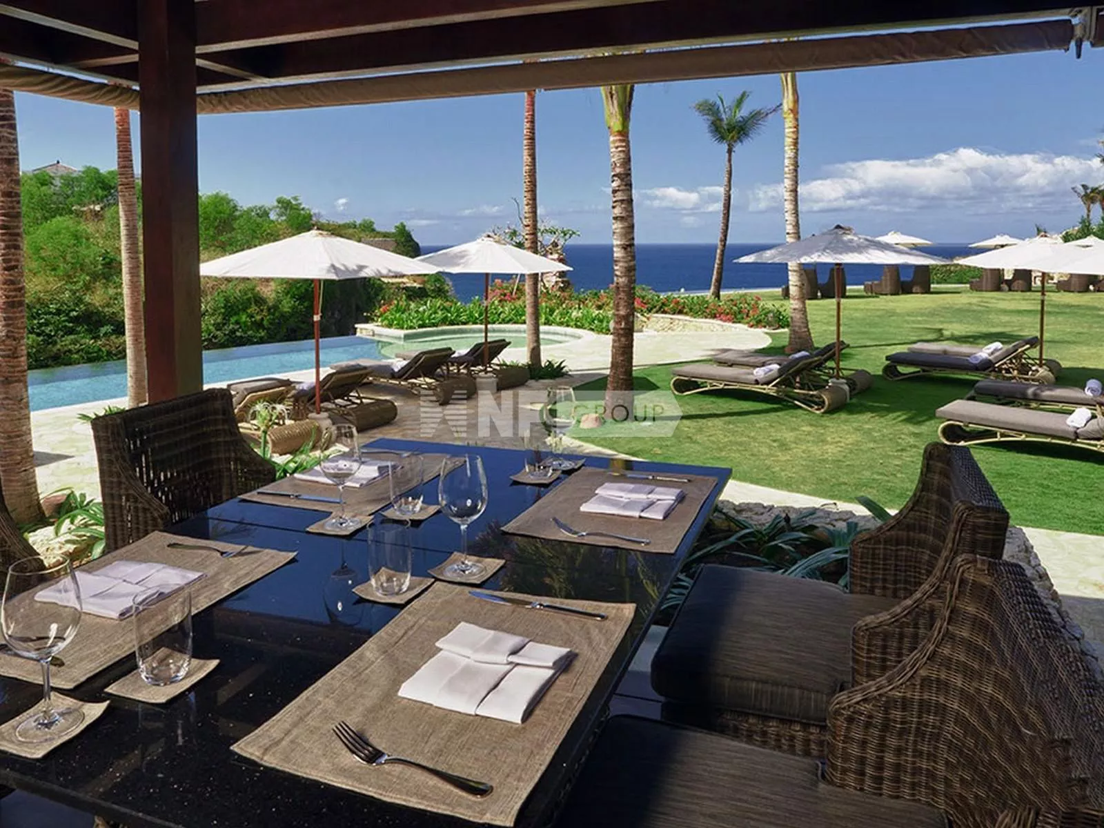 This newly renovated villa, located on a cliff top in Bali's renowned resort area, is an exquisite retreat that combines award-winning design by UBD with a cosy atmosphere of relaxation. Set on a spacious 2,514 sq m plot with 30 metres of beachfront, the villa offers unobstructed panoramic views of the Indian Ocean. Carefully designed with several buildings, this five-bedroom villa perfectly combines common areas and private nooks, providing each guest with an individual oasis of comfort and privacy. The master bedroom, located in the main building, occupies the entire upper floor and opens onto a private veranda, while the additional bedrooms are located in separate buildings connected by paths surrounded by lush gardens.