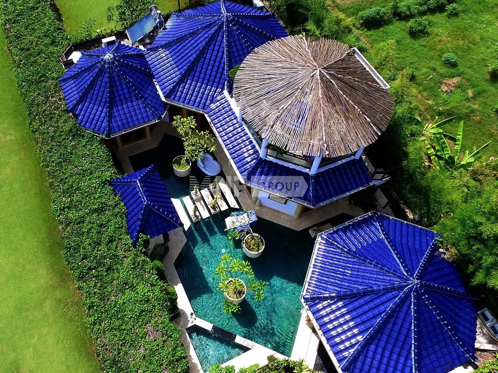 Built in 2009, the estate was conceived as a secluded retreat and currently comprises four villas, each with its own swimming pool. At the centre is a majestic two-storey residence with five bedrooms, spacious living rooms and its own gym, tucked away behind the garden and pool. Two additional two-storey villas offer two bedrooms each — the perfect place for a stylish and comfortable stay. Located on the seafront, the main two-bedroom villa opens directly onto the beach, offering panoramic ocean views from both suites, creating a unique sense of seclusion by the sea. The total area of the plot is approximately 1,500 square metres, surrounded by lush tropical gardens.