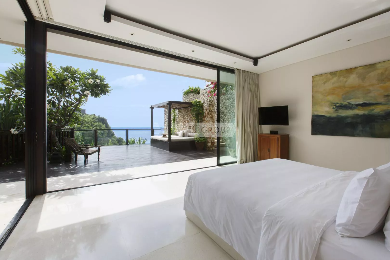 Perched on 2,500 sqm of prime freehold land with a staggering 30 meters of cliff frontage, this five-bedroom architectural marvel is a rare jewel in Bali’s most exclusive cliff-top enclave. Offering breathtaking views of the Indian Ocean, this villa embodies a seamless blend of sophistication, serenity, and investment excellence.