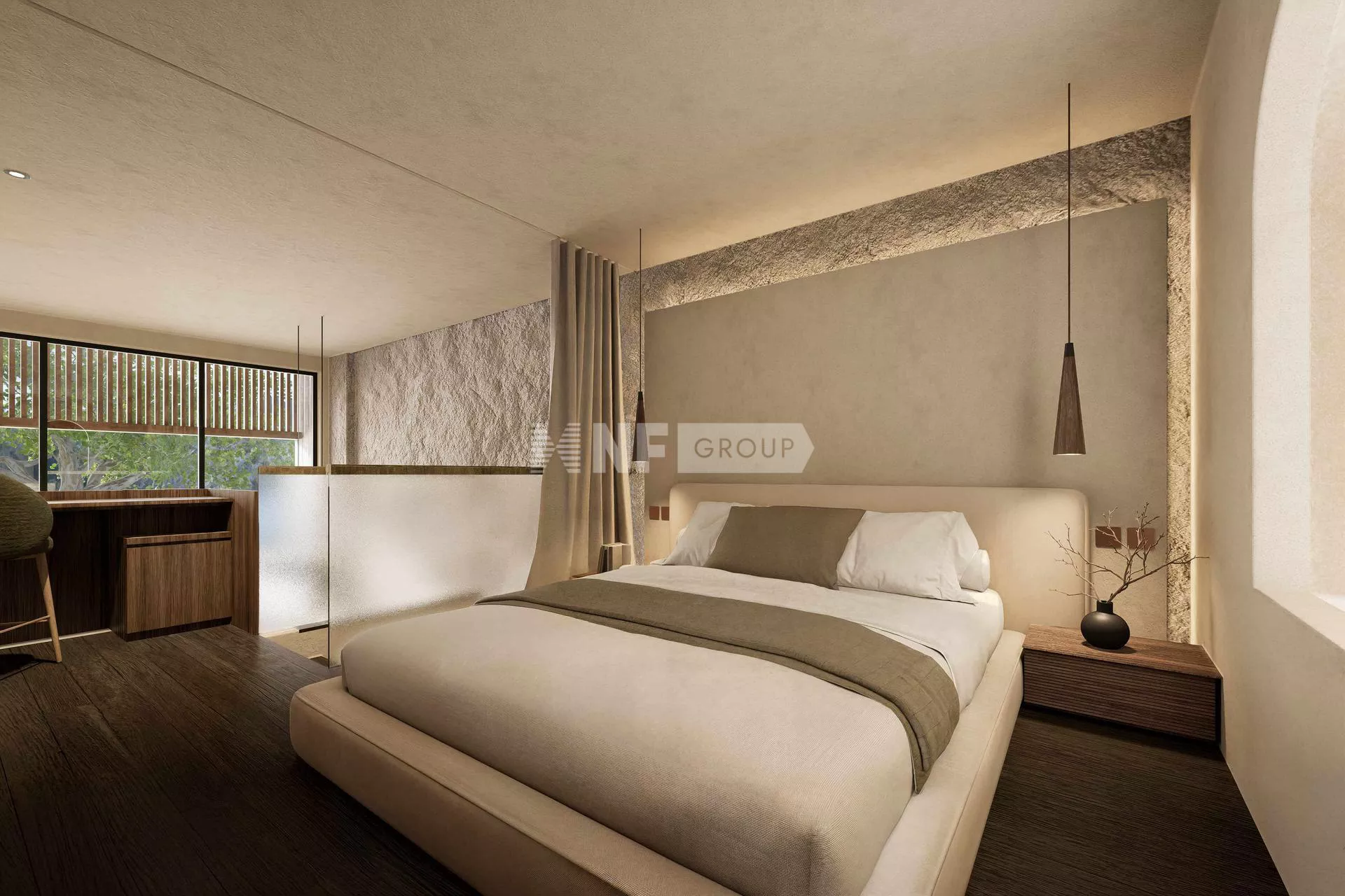 A stylish duplex loft with a double-height living area, floor-to-ceiling windows, and a modern open-plan kitchen. The upper level offers a private master bedroom and en-suite. With a dedicated patio and terrace, this unit blends contemporary design with Bali’s tropical ambiance, ideal for digital nomads and investors seeking high rental yields.