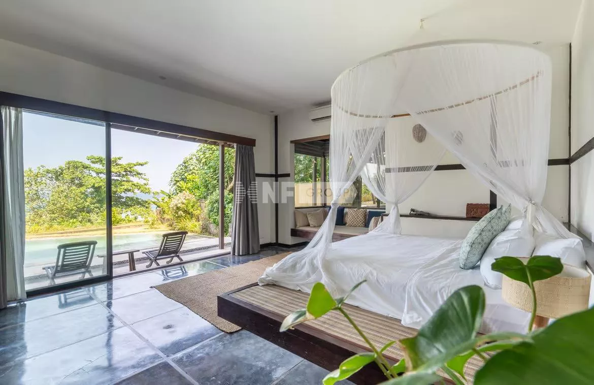 Three ocean-facing en-suite bedrooms anchor the main residence, each crafted with rich teak and bangkarai woods, styled in earthy tones that echo Bali’s natural beauty. Wake to the sight of traditional Jukung fishing boats drifting across the horizon—an authentic glimpse of island heritage from the comfort of your private retreat.