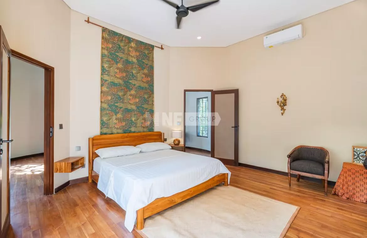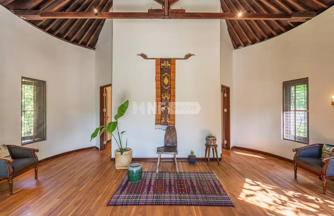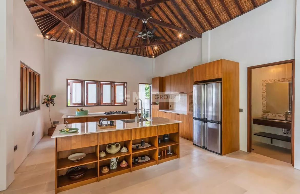 Spanning 1,240 sqm of freehold land, the villa comprises five bedrooms across four elegant pavilions, thoughtfully connected by covered pathways that meander through lush gardens.