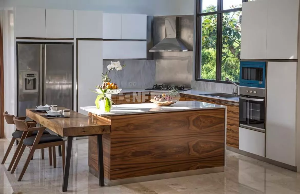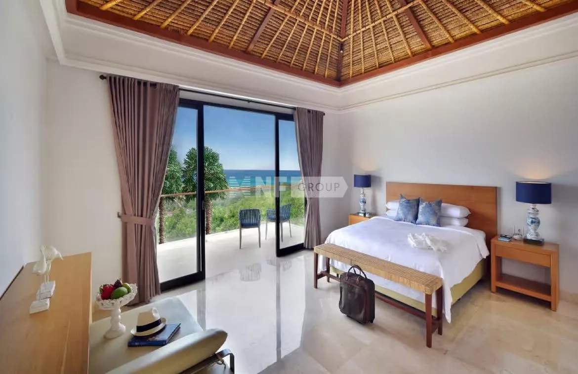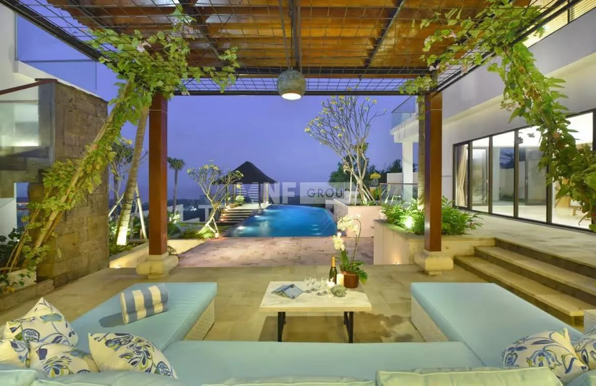 This luxury estate is perched high above the green sturdy peak, overlooking the vast royal blue waters of the Indian Ocean. The villa boasts multiple lounge and dining areas both indoor and outdoor, 4 spacious bedrooms, 2 modern equipped kitchens, staff quarters, and an infinity pool. Each bedroom is spacious and has a large built-in wardrobe and a terrace or balcony to enjoy fascinating ocean views. All bathrooms are en-suite and a Spa room is available in one of the bathrooms. The use of floor-to-ceiling glass doors makes the indoor merge with outdoor. A gazebo sits at the edge of the property and next to the pool is a perfect place to entertain guests. An equipped kitchen and service area is beneath the gazebo. There is also a rooftop lounge to relax without being disturbed. The property is built to a high standard with a marble floor, high ceiling, and asphalt roof. Located in Ungasan, it is only 3.5km away from Karma beach with its white sand.