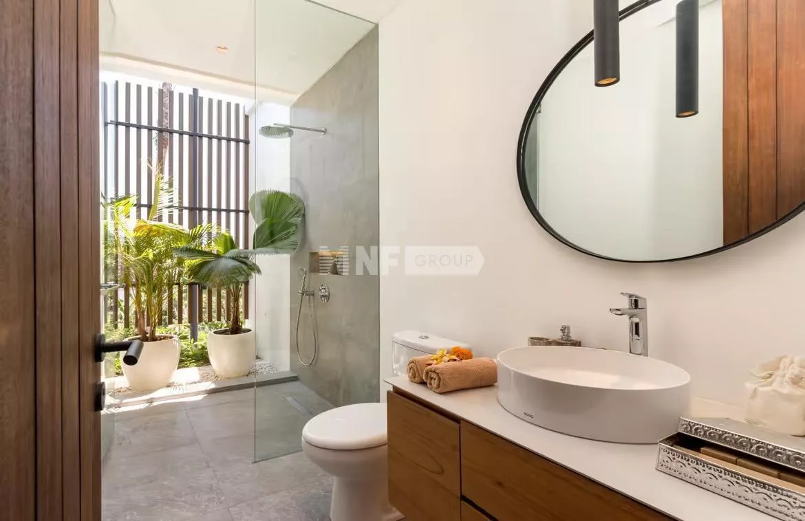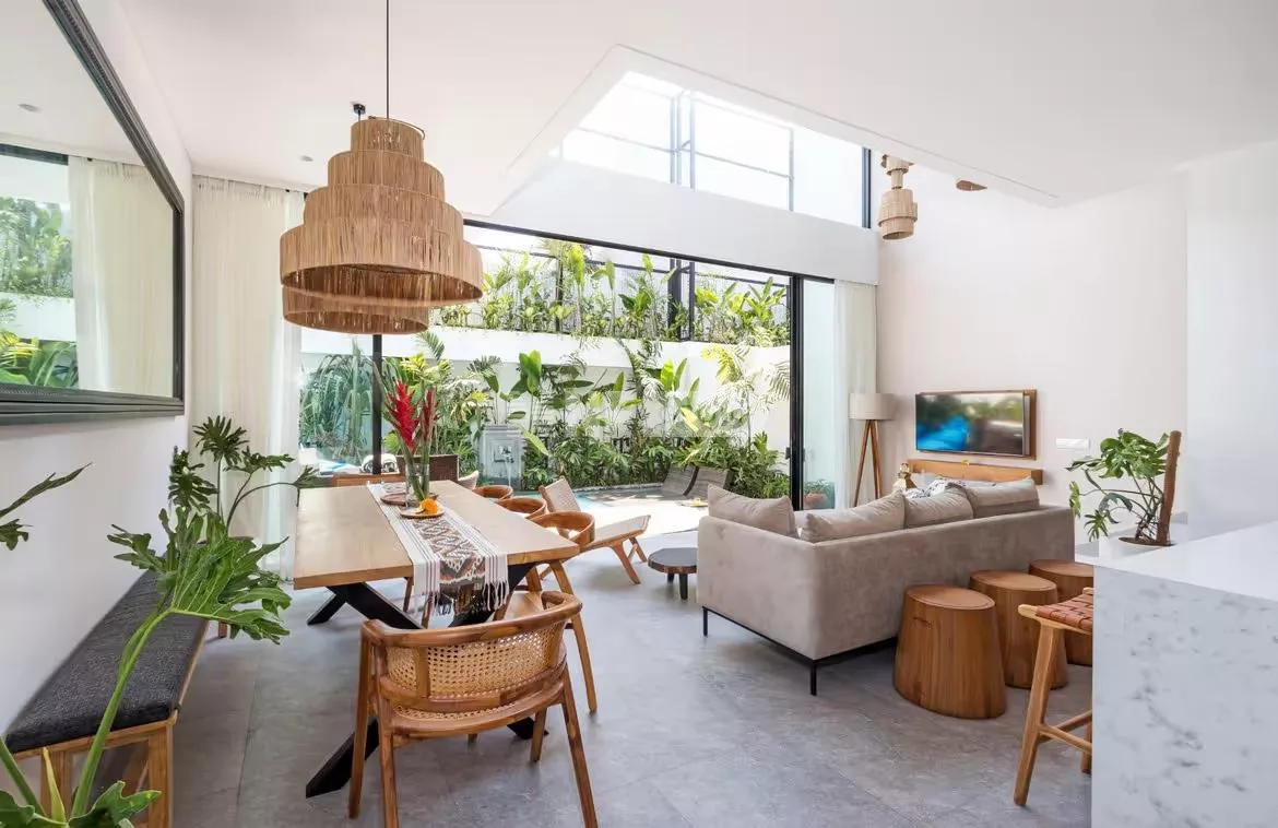 Immerse yourself in the epitome of tropical luxury with this exquisitely designed villa, where vibrant greenery cascades in every corner. A true embodiment of the Bali lifestyle, this three-bedroom haven is ingeniously crafted on a compact 200sqm land, offering an expansive 150sqm of living space.