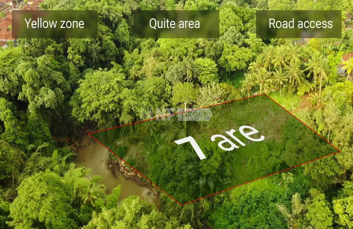 This 700-square-meter plot offers a tranquil riverfront with a gently flowing river, surrounded by lush trees. Situated in the serene village of Buwit, it’s less than a 10-minute drive to Nyanyi Beach and the vibrant Canggu area, renowned for its shops and restaurants. The land is rectangular, with a 15-meter river frontage and a length of 46 meters. Its gentle slope toward the west-facing river makes it an ideal location for developing luxurious villas with stunning views. Access is via a 4-meter-wide road, with electricity available within 100 meters for convenient connection. The property is available for lease until June 18, 2055, with an option to extend at the prevailing market rate.