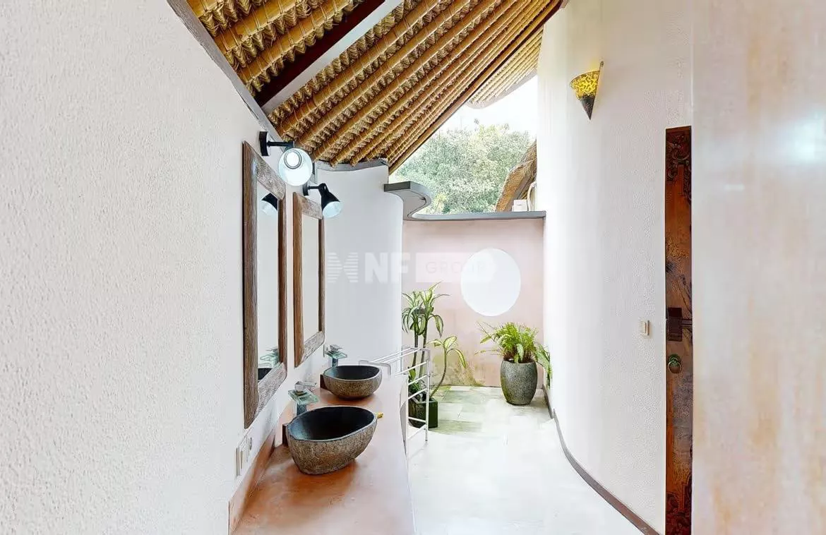 The estate also includes a separate staff area with a bathroom and kitchen, as well as on-site parking for two cars. This established business offers a fantastic entry point into the rental market, combining elegance, privacy, and a unique tropical setting.