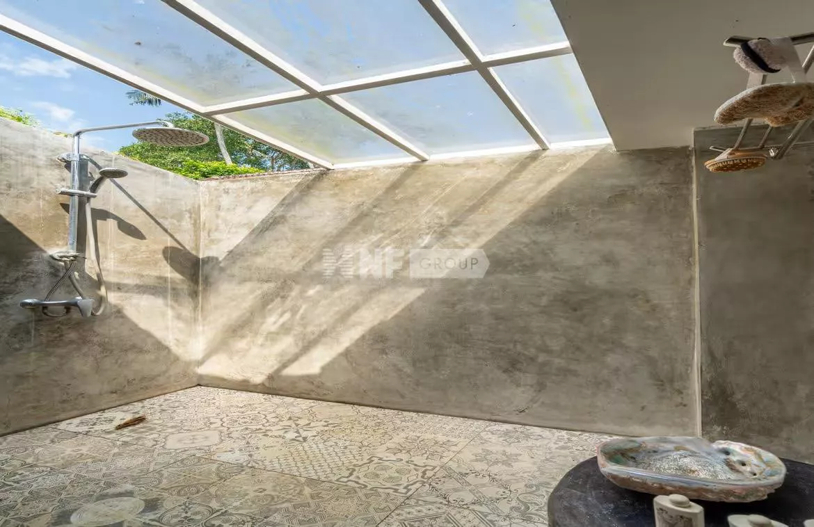The first pavilion showcases two spacious bedrooms, each with its own large en-suite bathroom, providing a private retreat for relaxation. A grand open living area seamlessly merges with a well-equipped kitchen, creating a central hub for entertaining and spending quality time with loved ones. A veranda adds to the charm, offering a delightful outdoor space to enjoy the tropical surroundings.