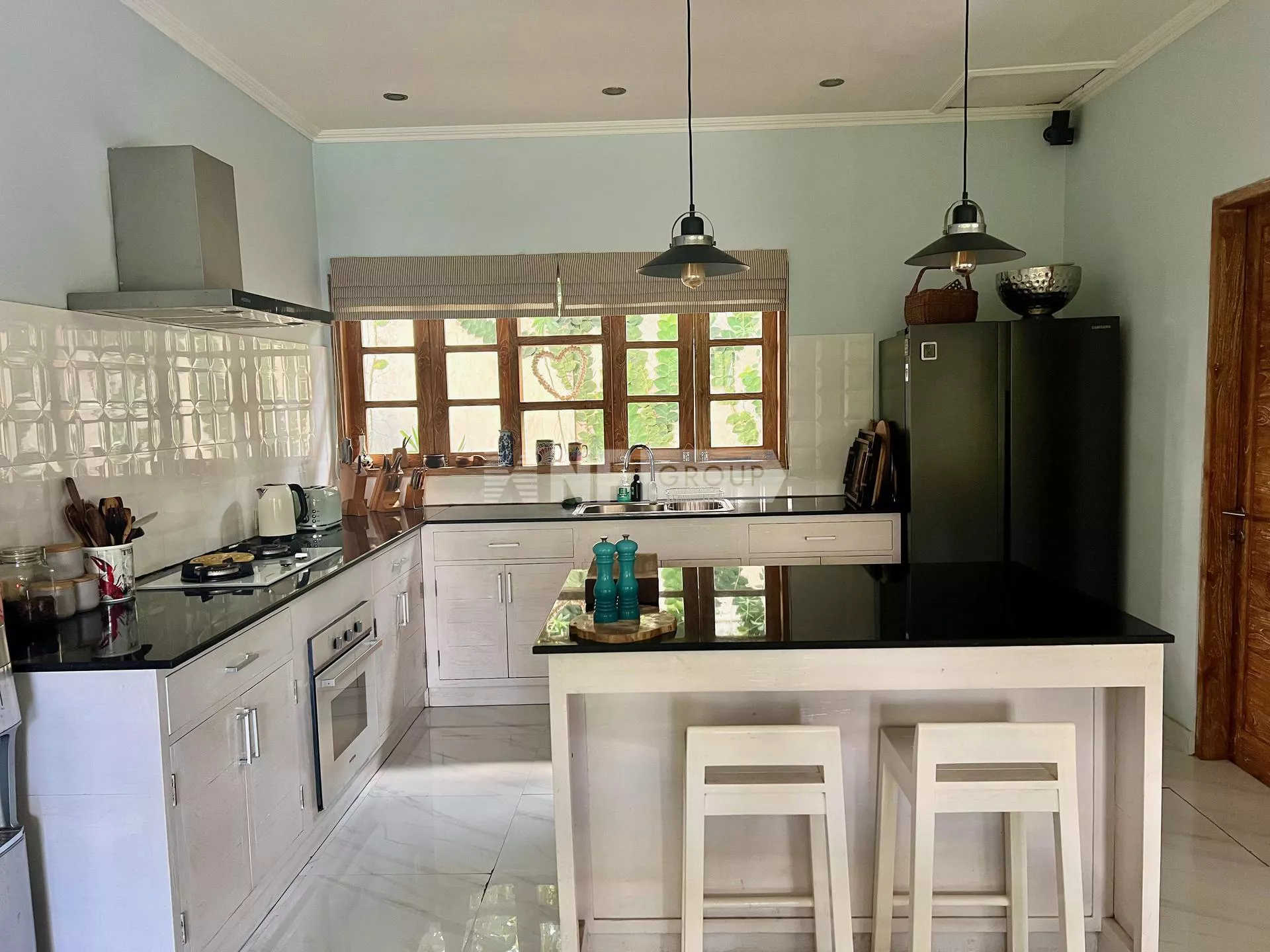 flood every corner with natural light. The lush tropical garden