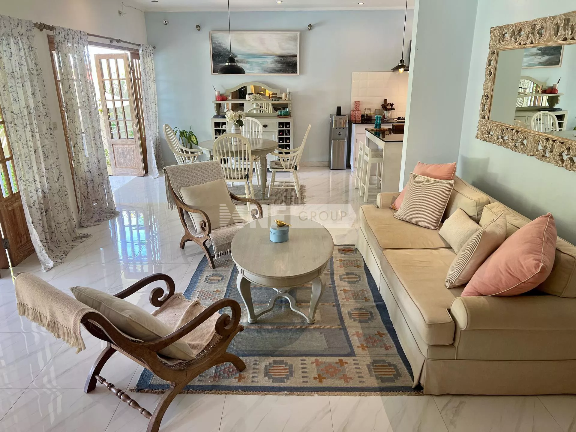 veranda. The bright, airy interiors are tastefully furnished with