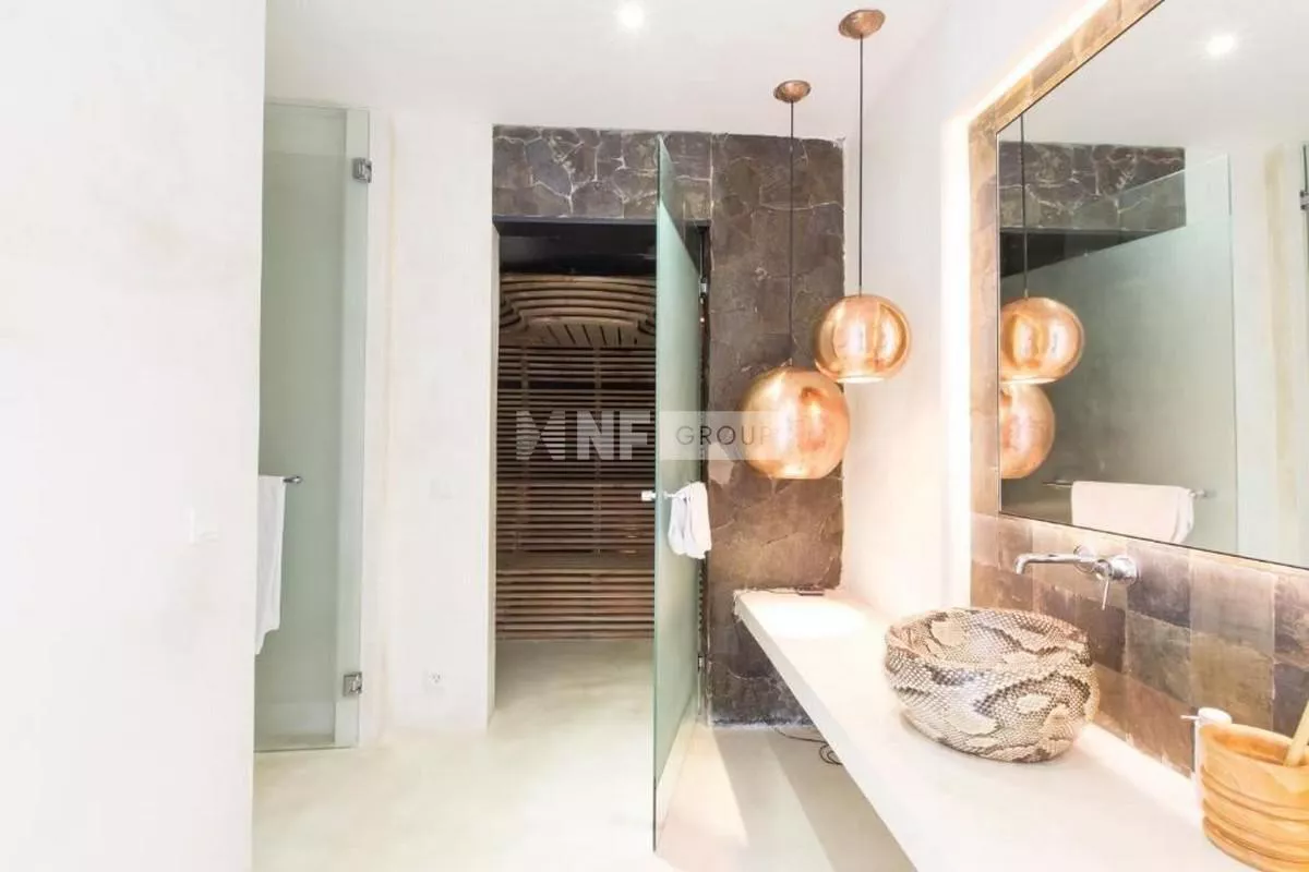 Set within enchanted gardens, this contemporary villa has a floor space of 1325 sqm and offers several areas for lounging, a fully equipped kitchen and a rooftop terrace. Featuring 4 ensuite bedrooms, an 8m x 5m infinity pool with its own modern bale, barbeque facilities, fitness centre, sauna room, laundry room, staff quarters, CCTV, onsite parking for 4 vehicles, garage for 3 cars and 24-hour security. The villa even has its own cinema room.